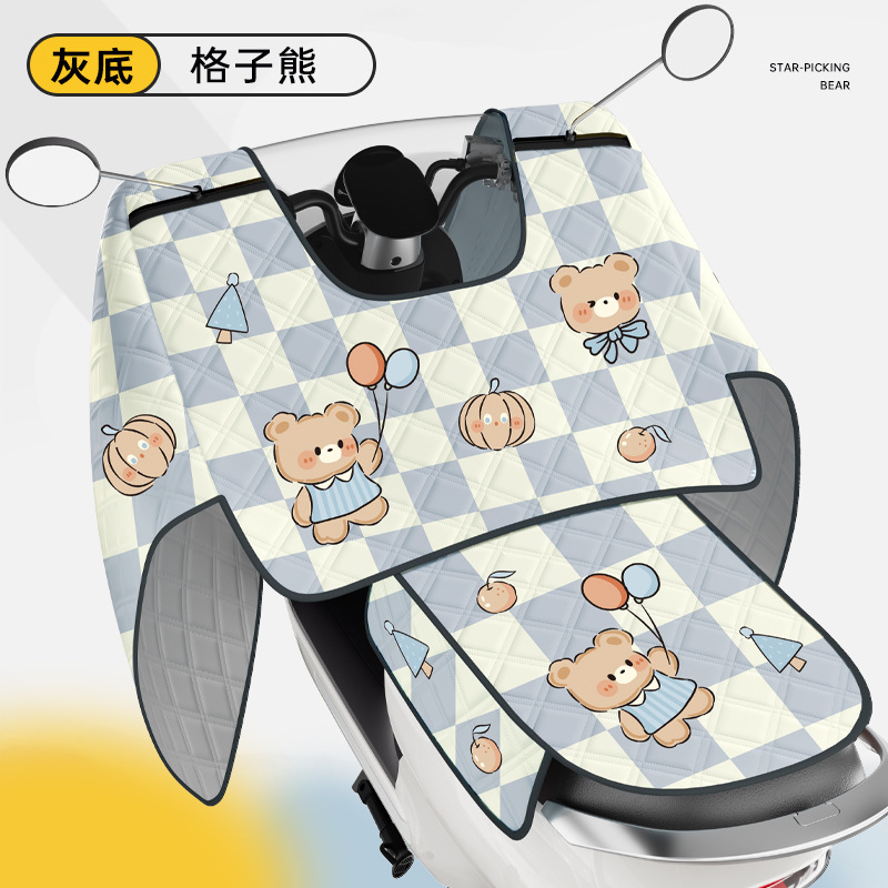 • [일체형 쿠션커버 + 자외선 차단 및 보온] 그레이 체크무늬 벌룬베어