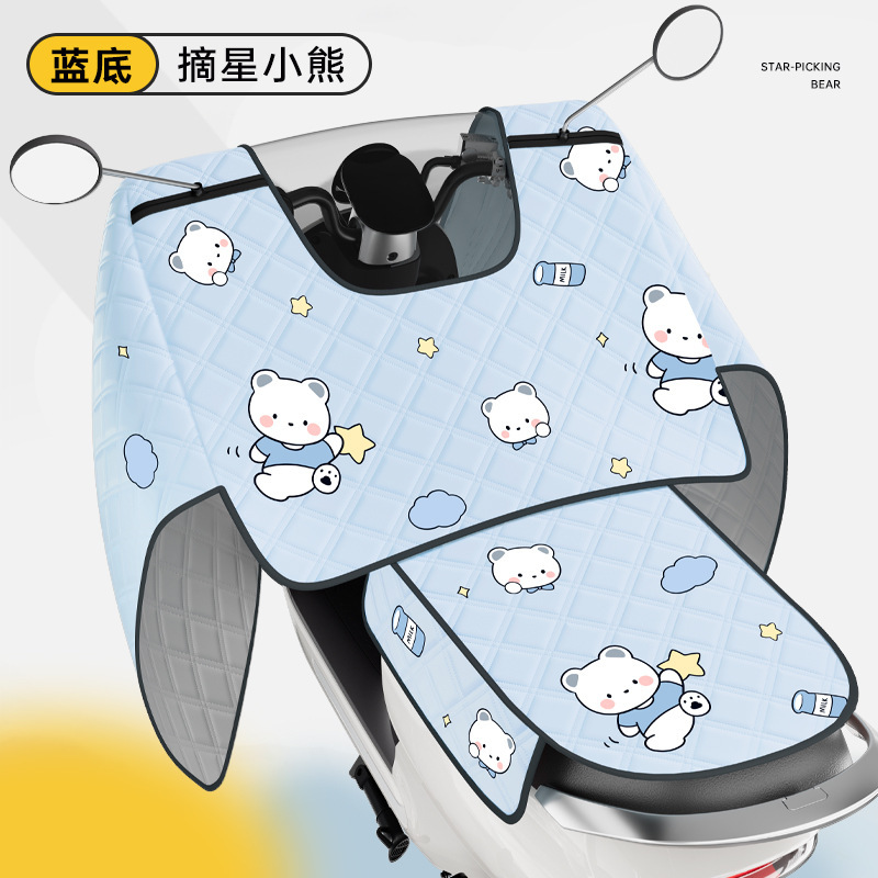 • [일체형 쿠션커버 + 자외선 차단 및 보온] 파란색 배경 별곰