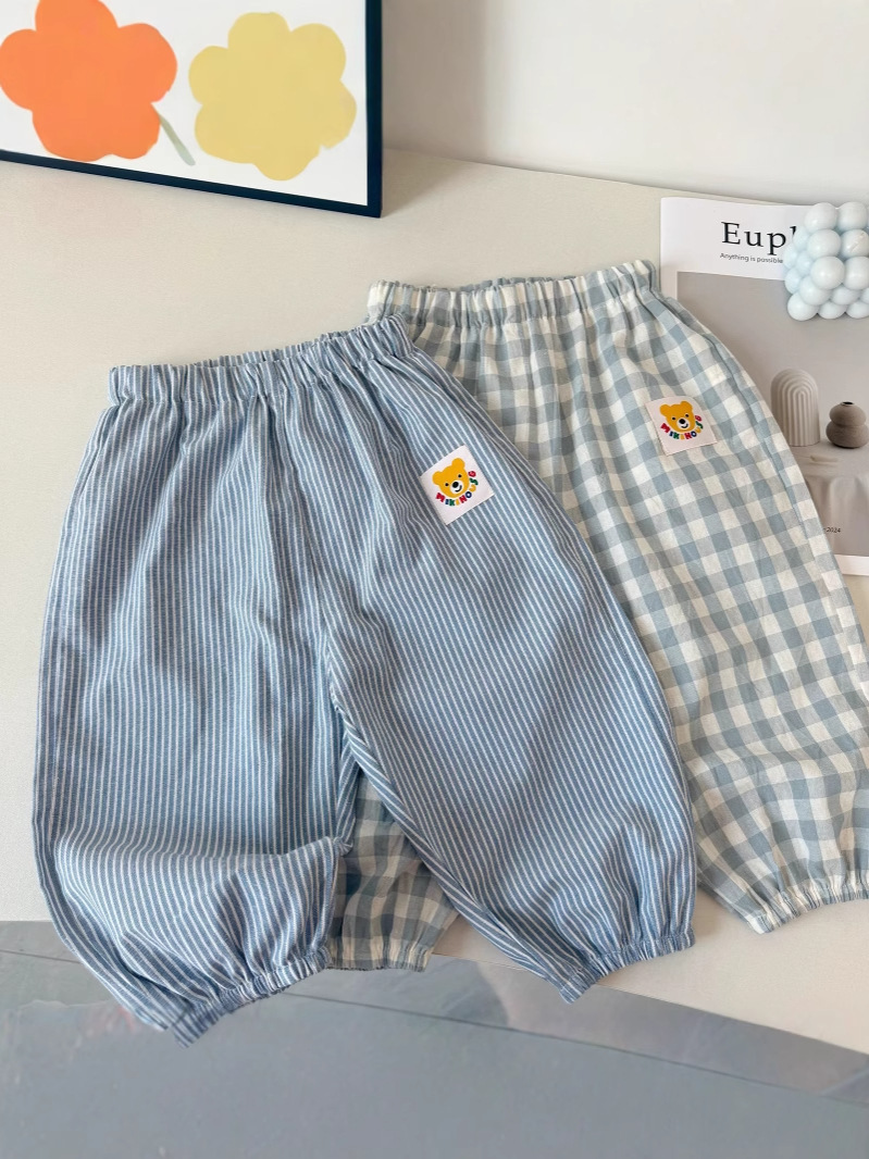 크림 모기 방지 바지 2025 여름 소년과 소녀 만화 곰 바지 아기 및 중소 어린이 캐주얼 격자 무늬 바지스토어 가기