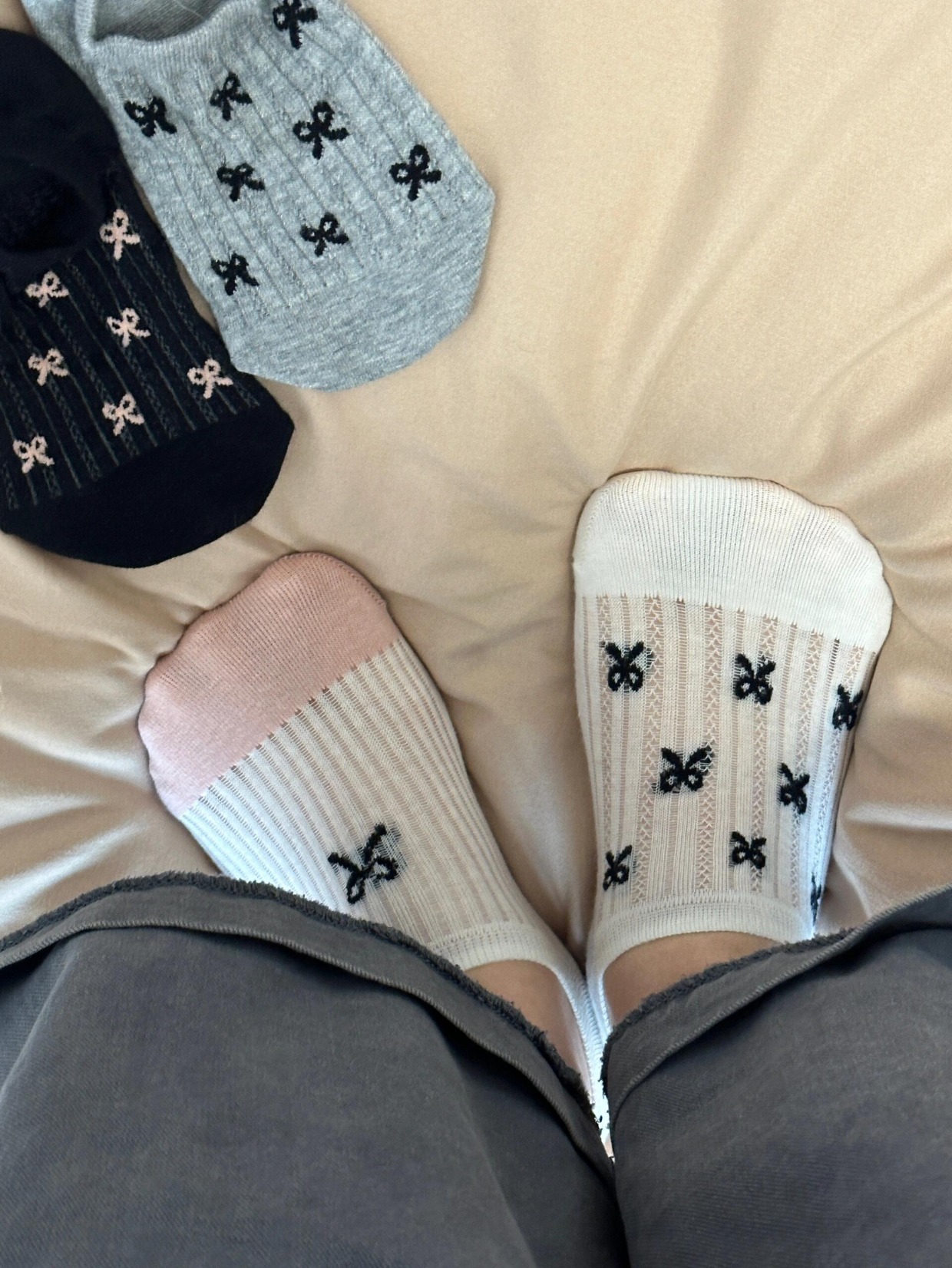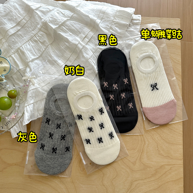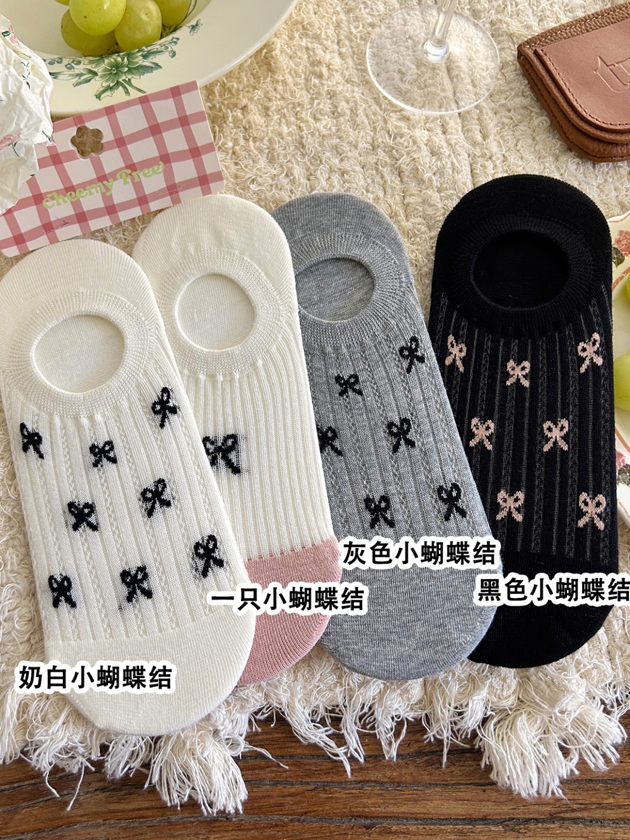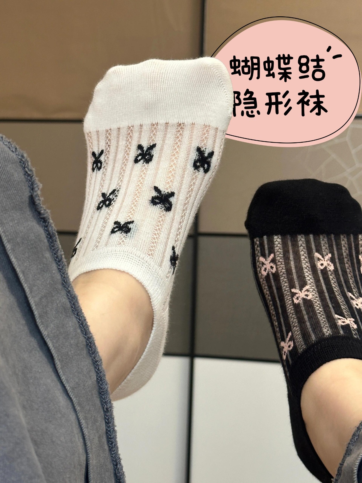 "Little Butterfly" 양말 여성용 보트 양말 얕은 입 보이지 않는 중공 메쉬 통기성 다용도 실리콘 미끄럼 방지 및 떨어지지 않는 발 뒤꿈치