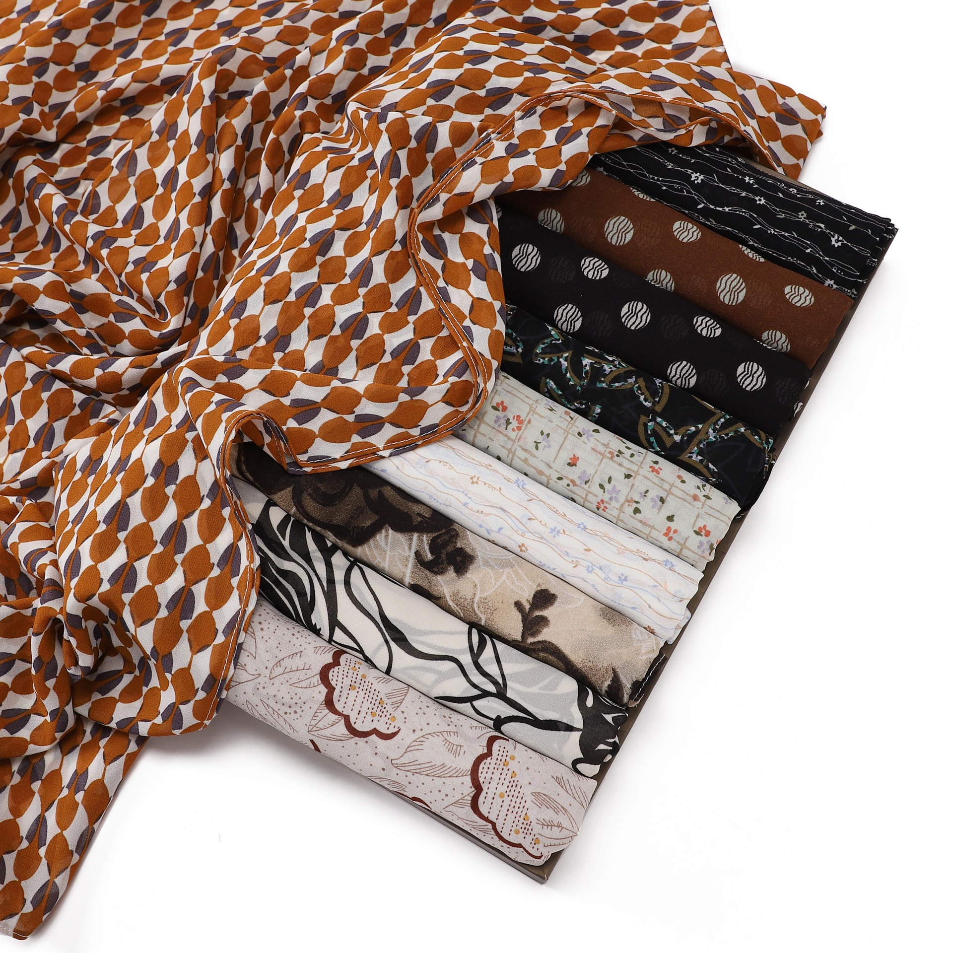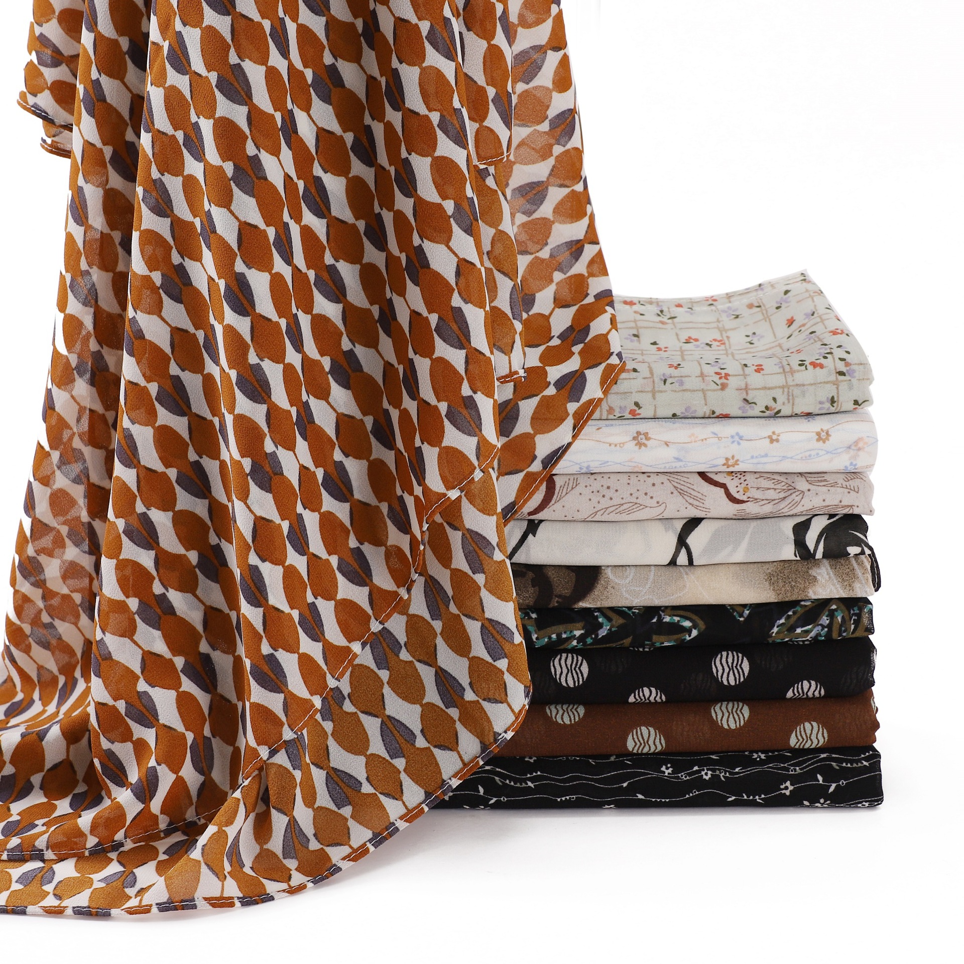 碎花珍珠雪纺印花围巾