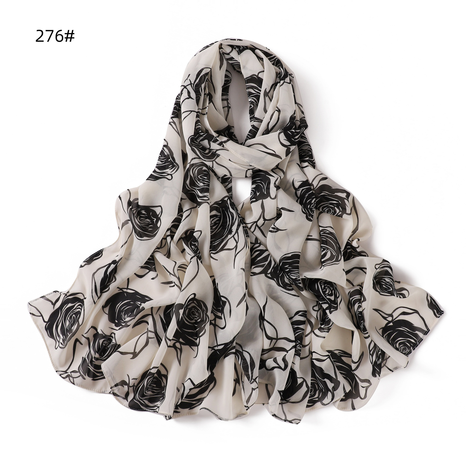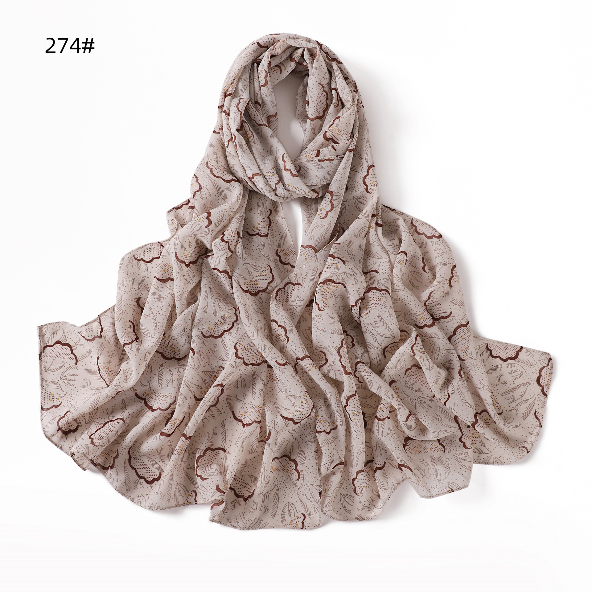 패션 로즈 도트 인쇄 진주 쉬폰 스카프 통기성 다깅 꽃 여성 스카프 번호 268-277