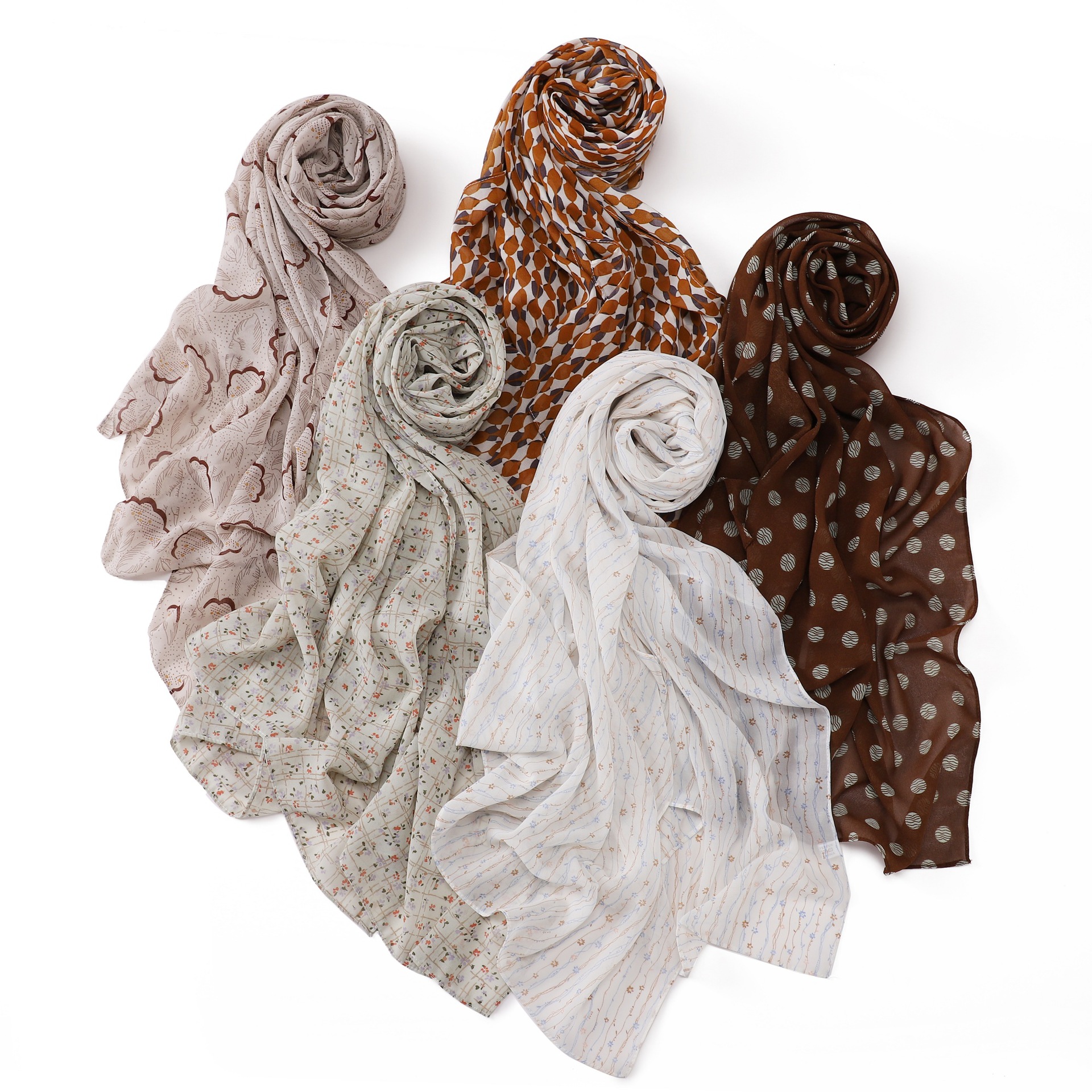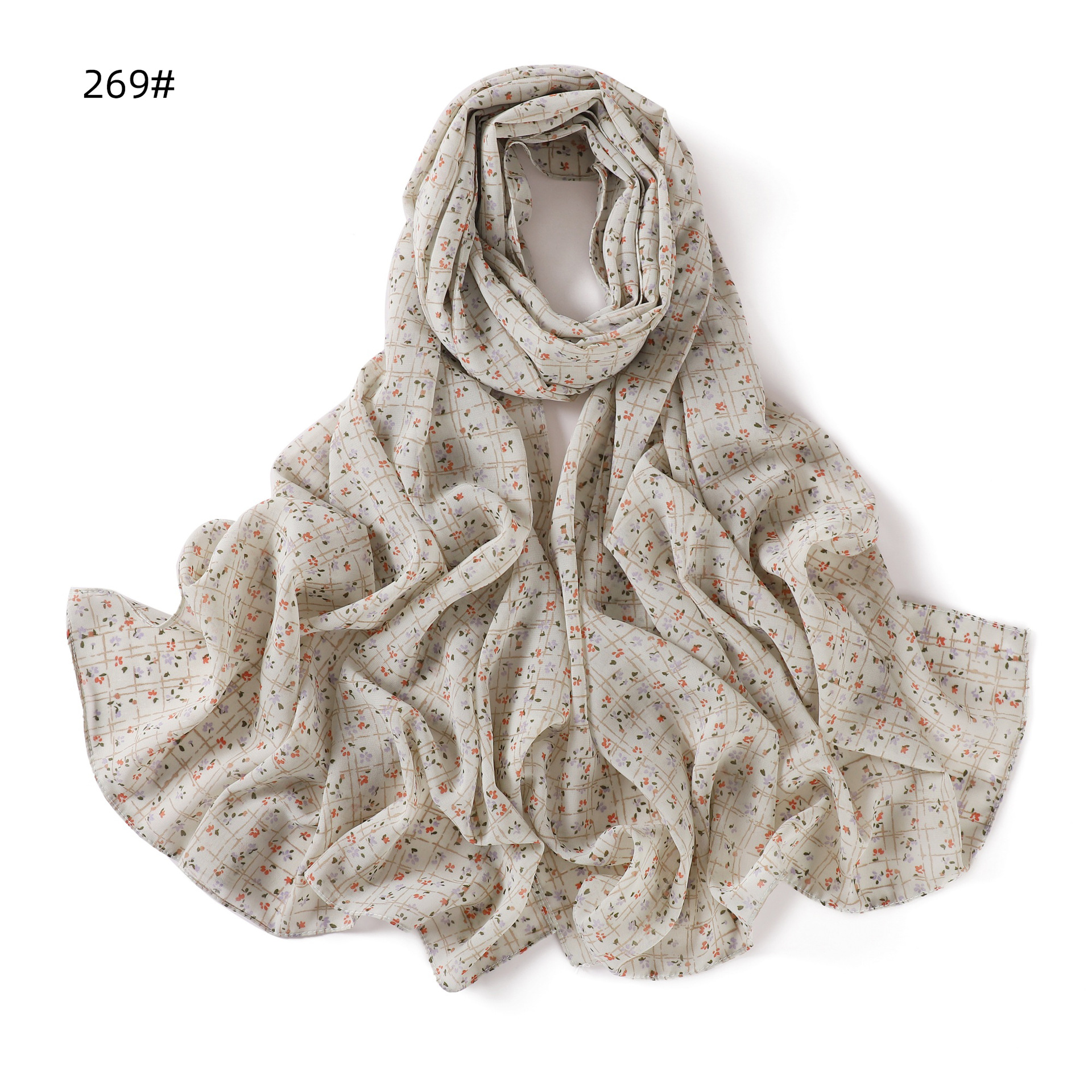 패션 로즈 도트 인쇄 진주 쉬폰 스카프 통기성 다깅 꽃 여성 스카프 번호 268-277스토어 가기