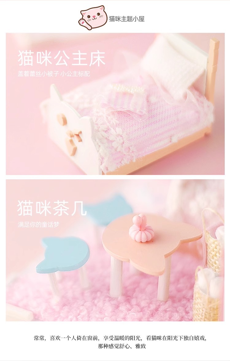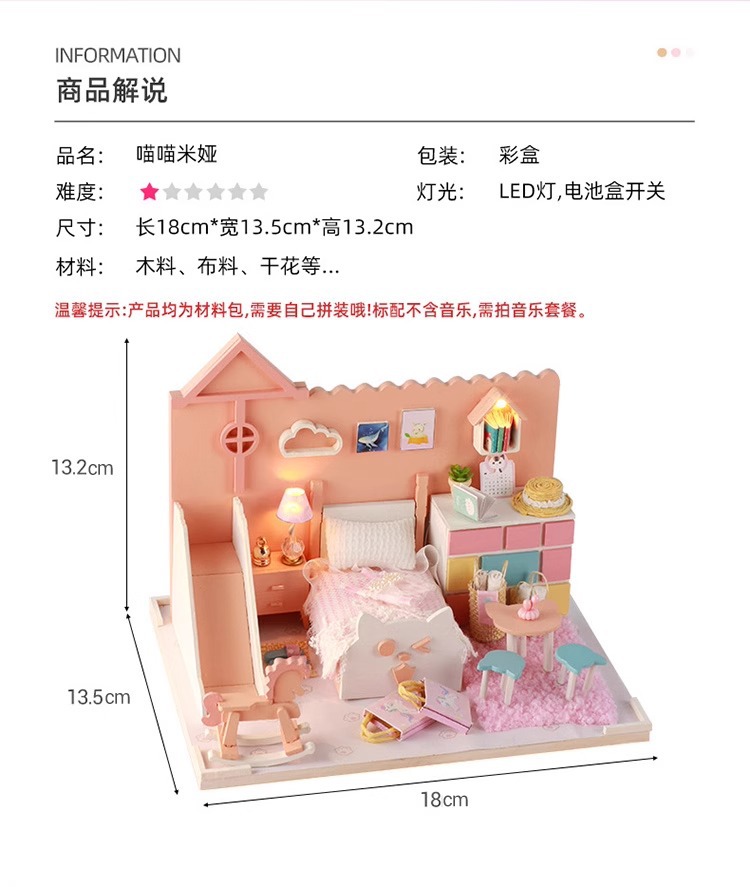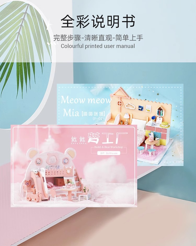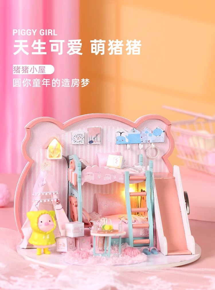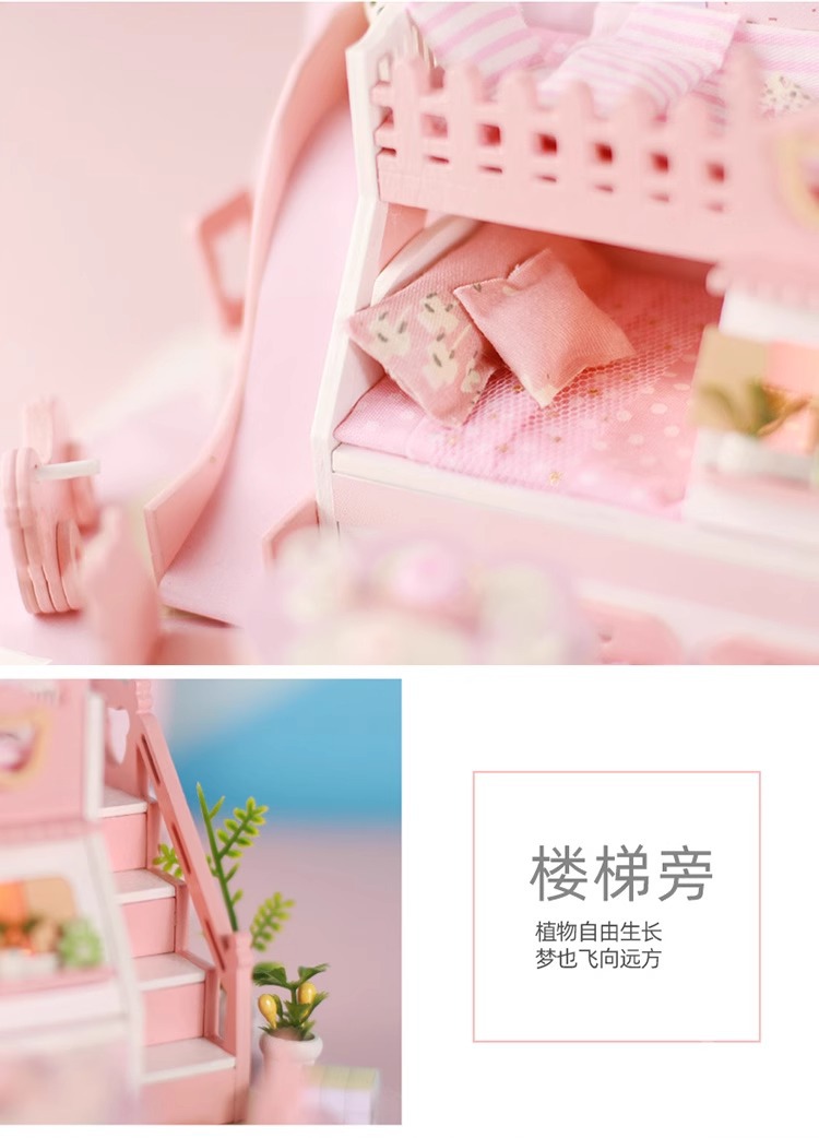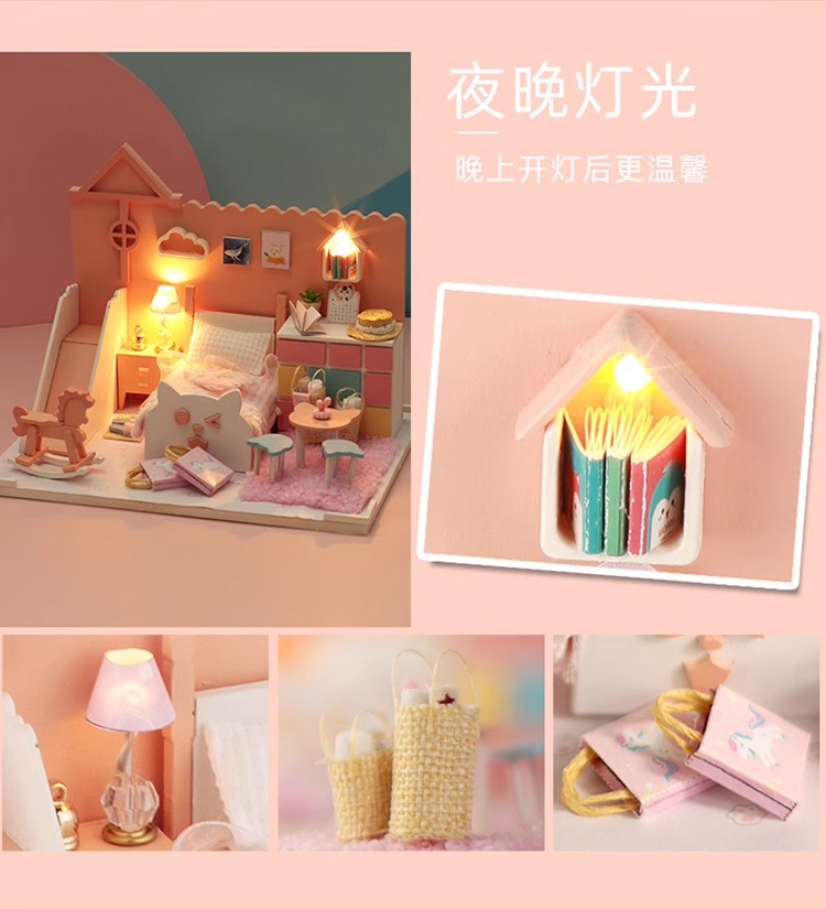 Zhiwo Cottage 어린이 수제 간단한 조립 Bear Dream Factory 소녀를위한 침대가있는 미니 하우스 모델