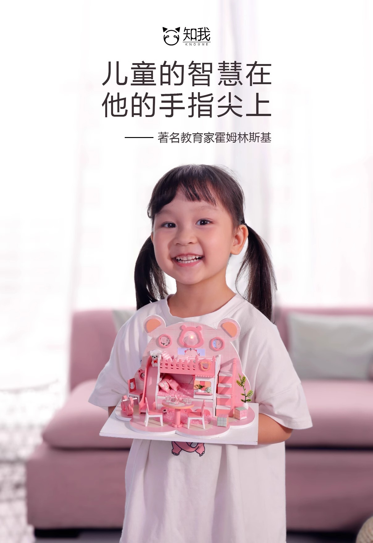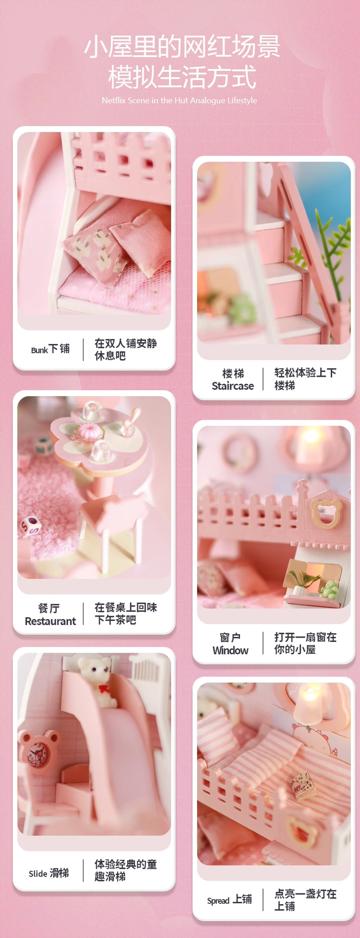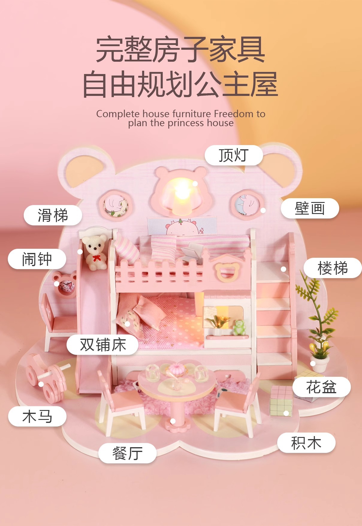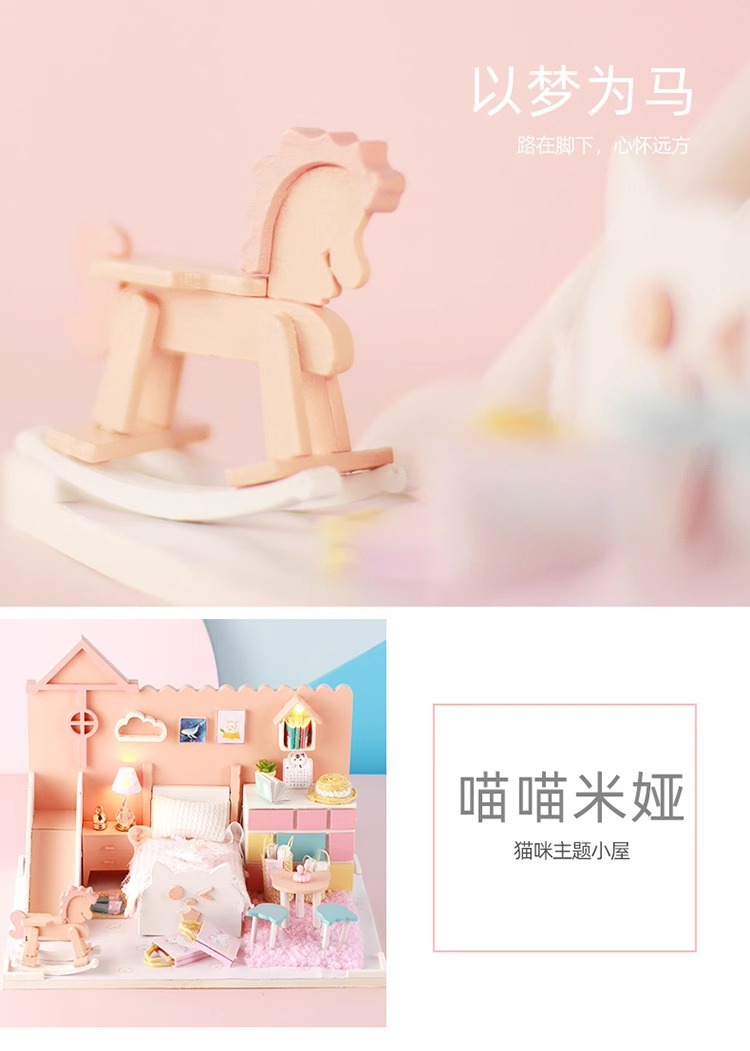 Zhiwo Cottage 어린이 수제 간단한 조립 Bear Dream Factory 소녀를위한 침대가있는 미니 하우스 모델