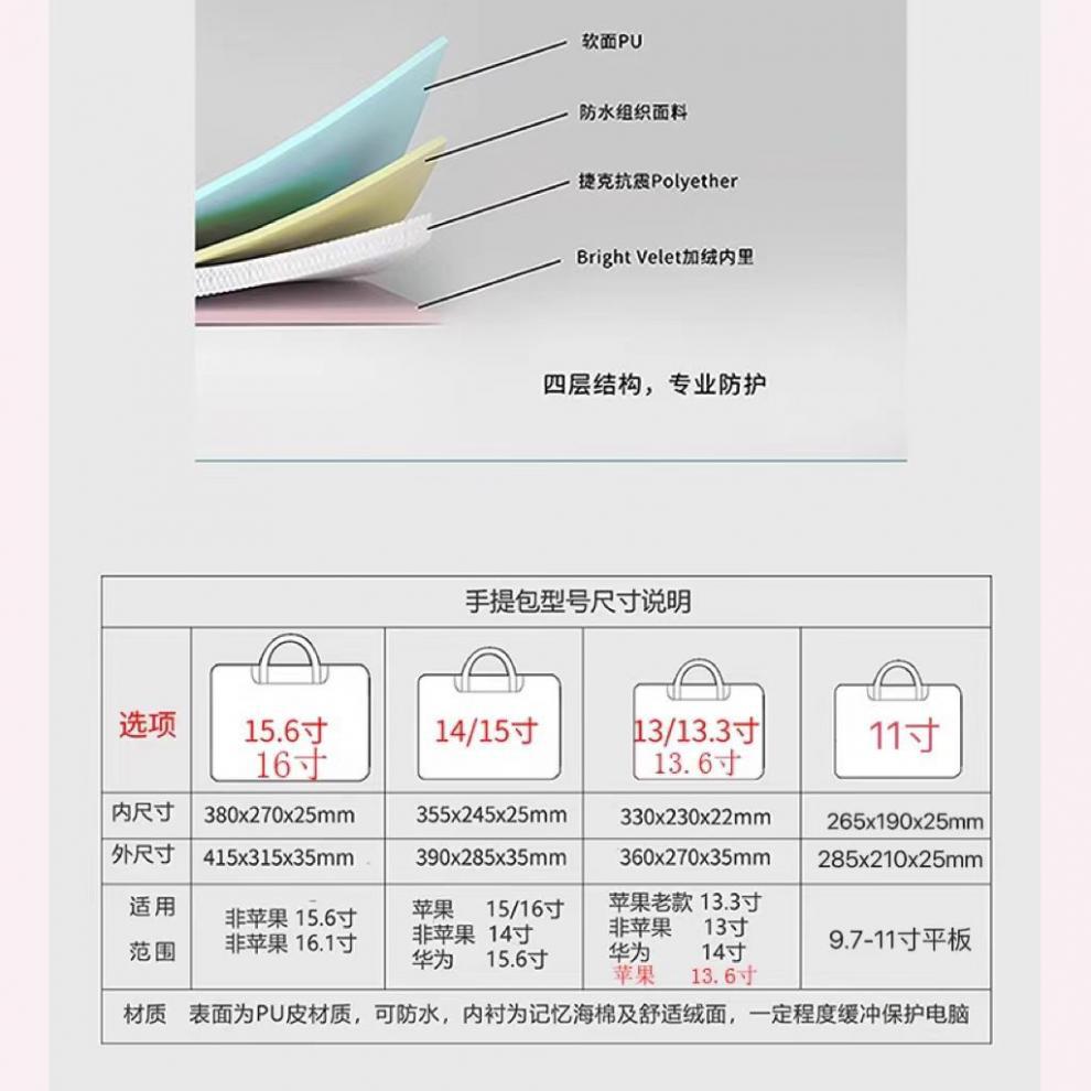 휴대용 노트북 가방 13.3 인치 충격 방지 여성 애플 13.6 Xiaomi Huawei 14 Lenovo 15.6 Dell 16