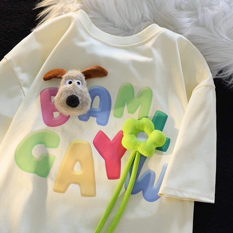 여자 반팔 2025 새로운 여름 어린이 유행 인터넷 연예인 패션 티셔츠 여자 여름 느슨한상의스토어 가기