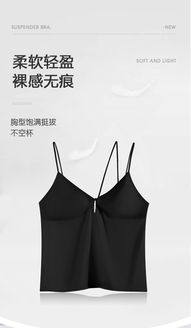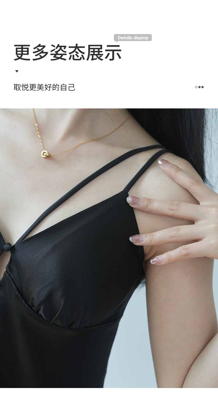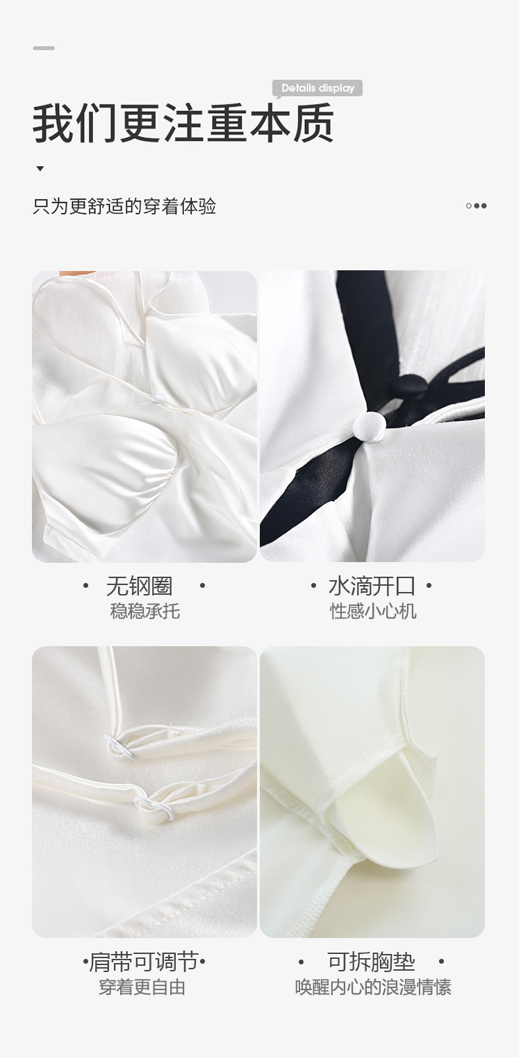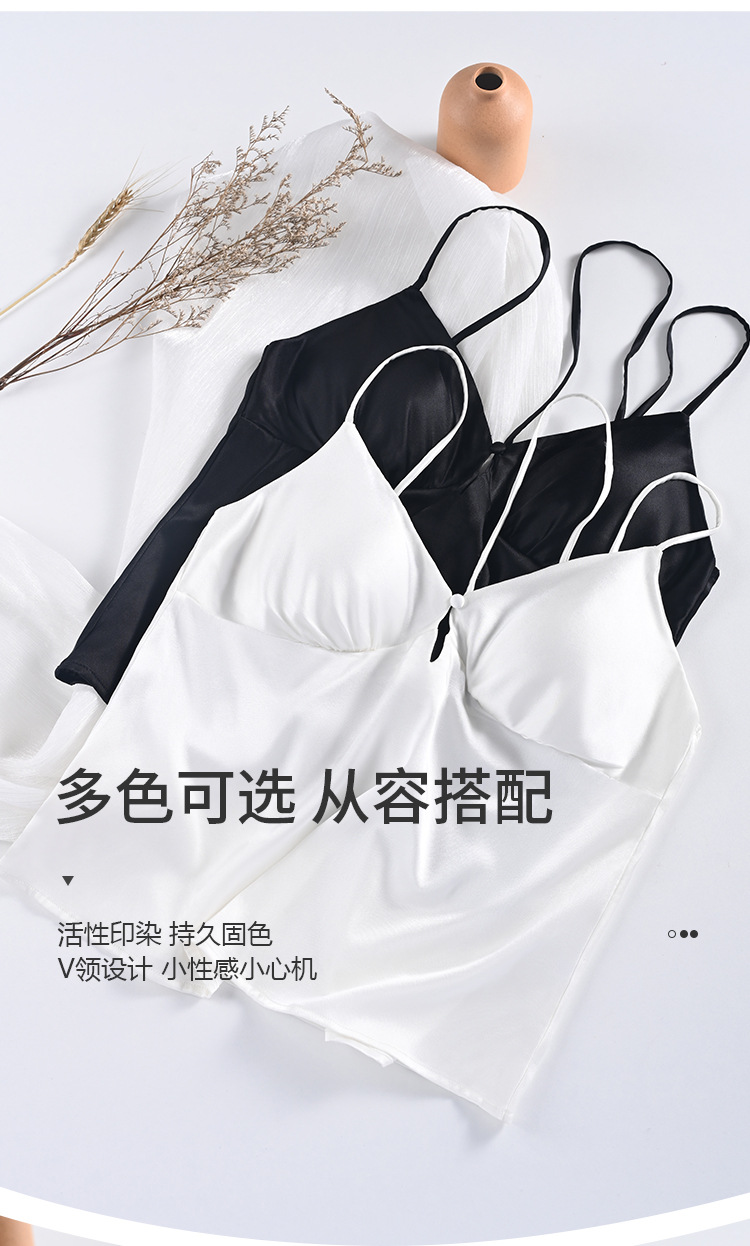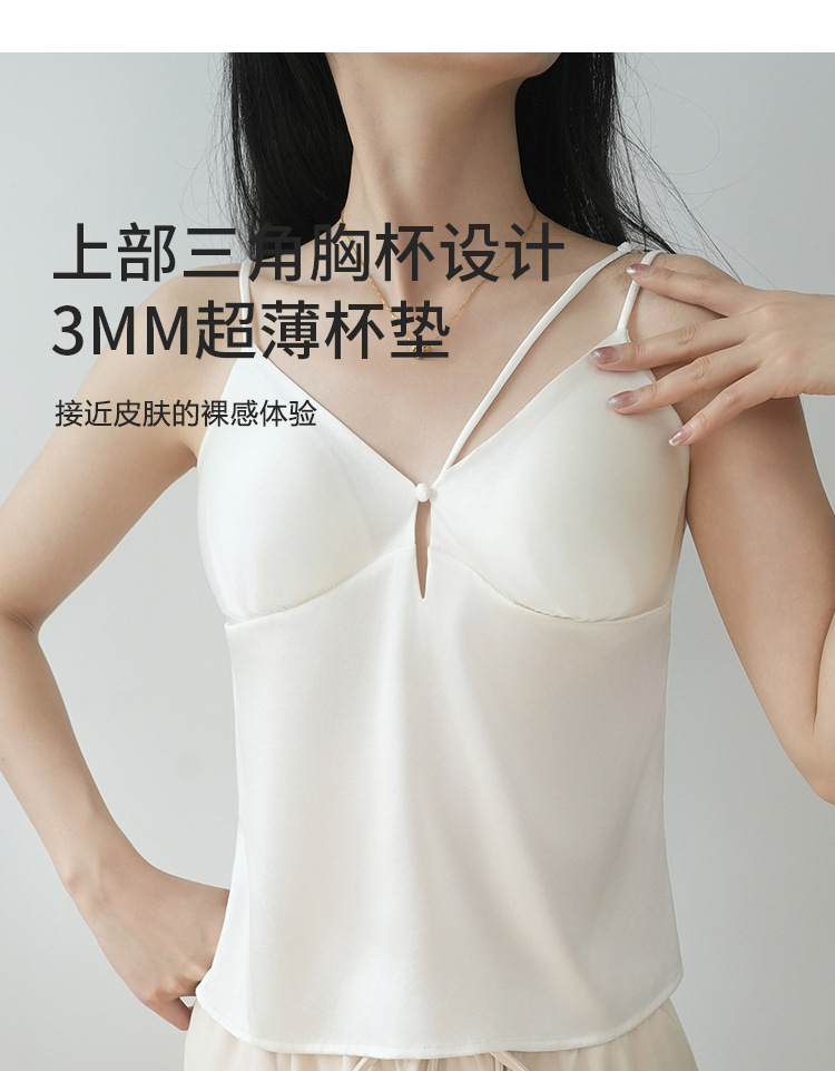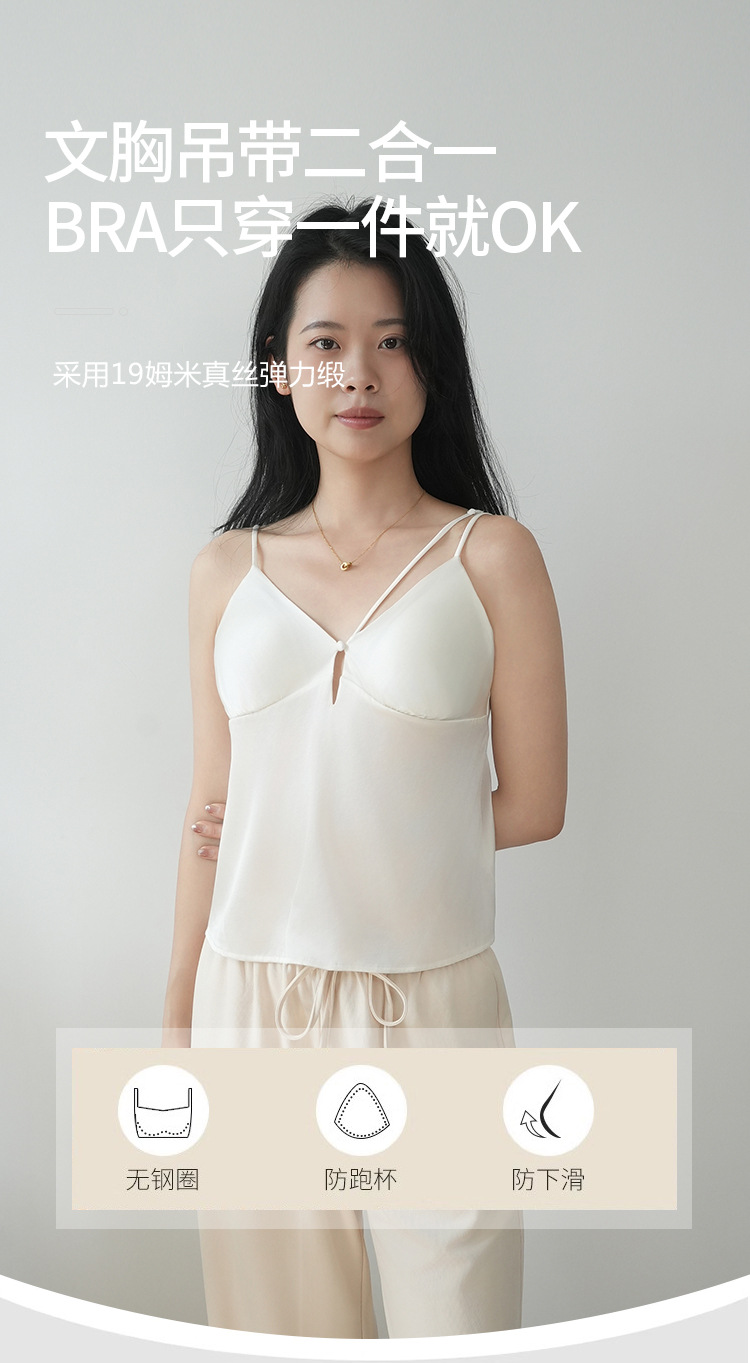 Guolian 스트레치 새틴 실크 버튼 V 넥 서스펜더 멀버리 실크 코스터 투인원 더블 숄더 스트랩 아름다운 등스토어 가기