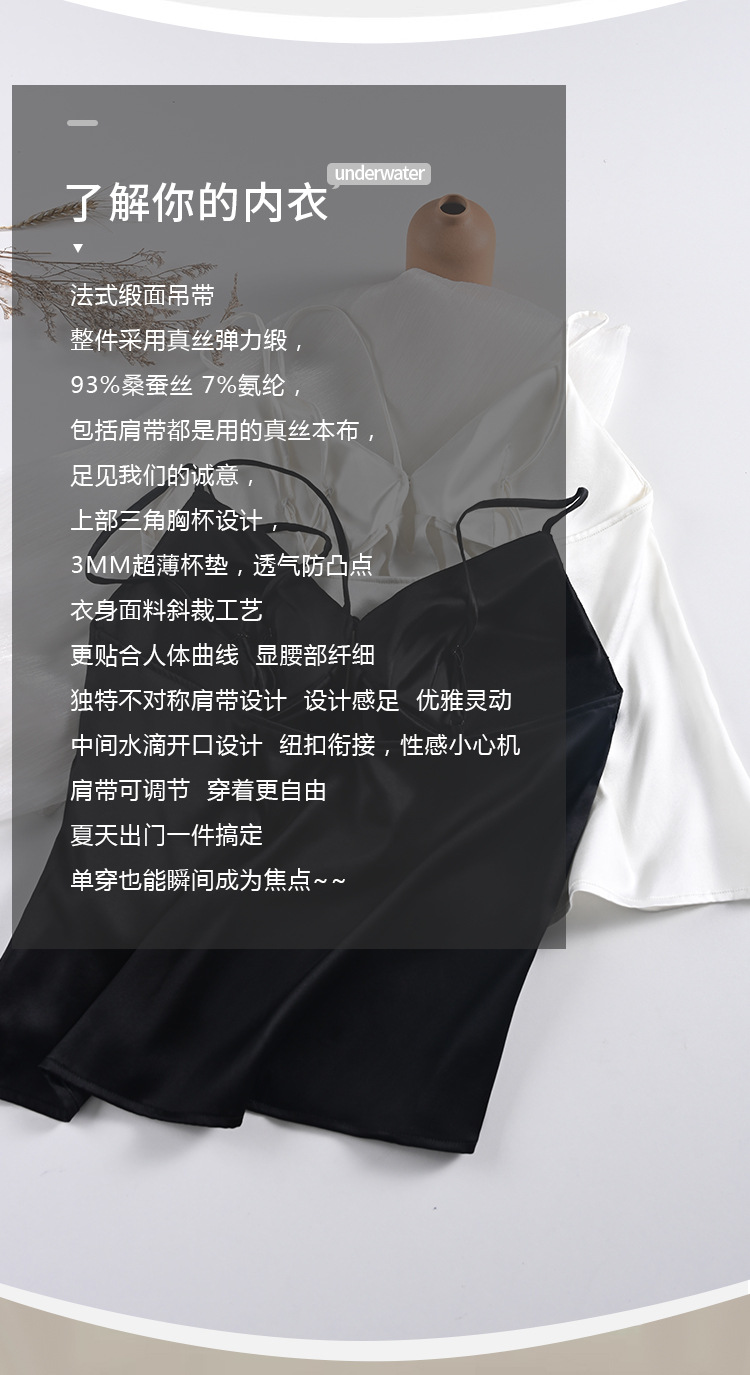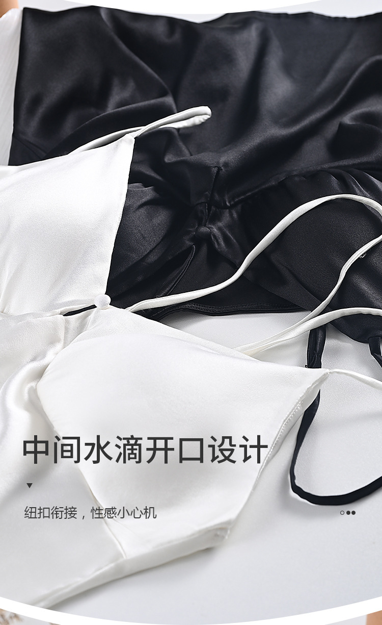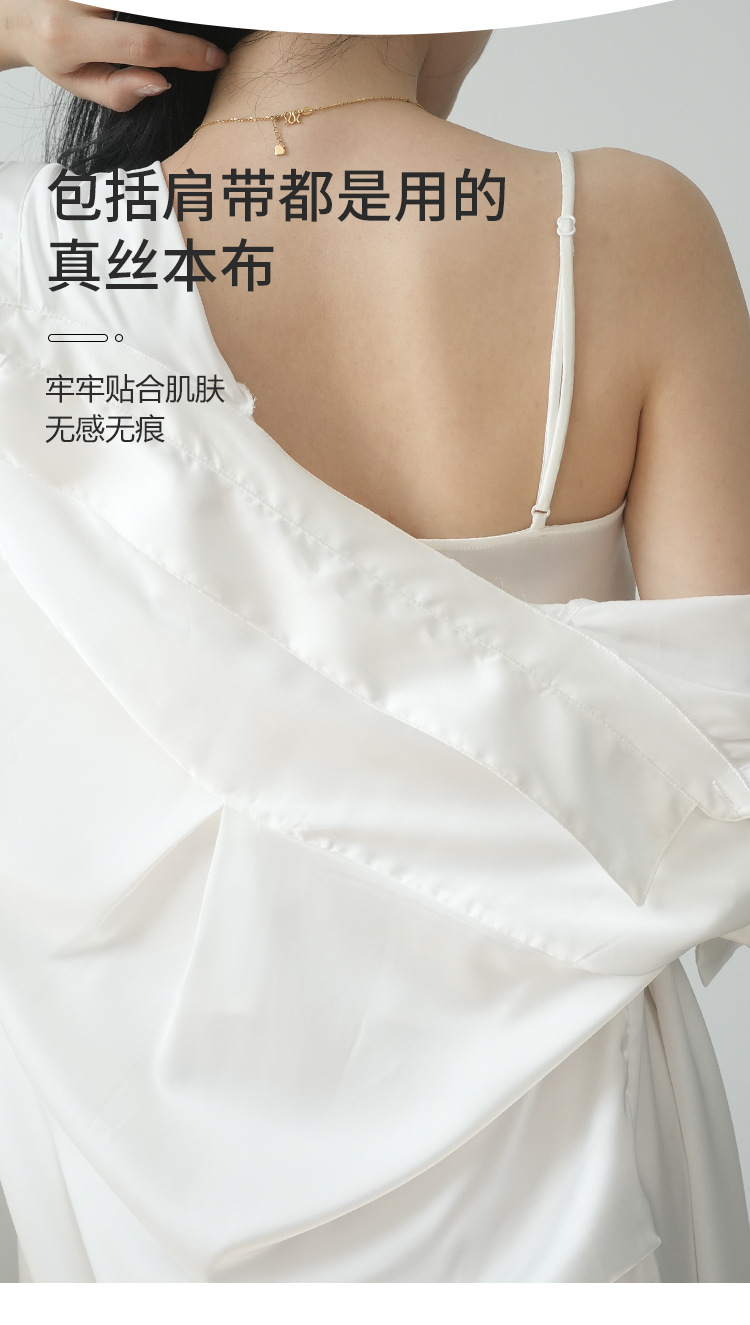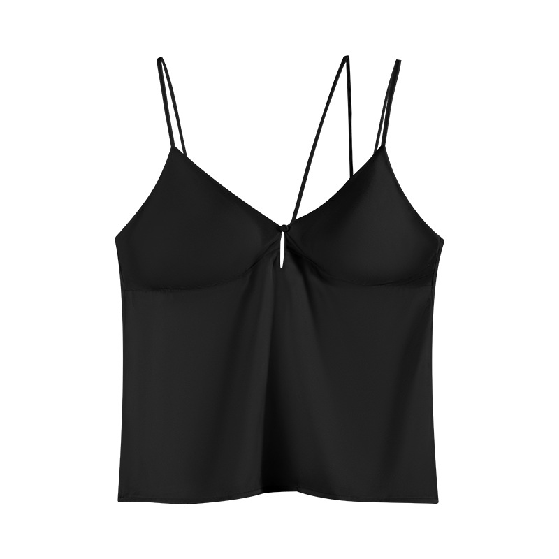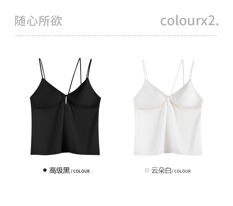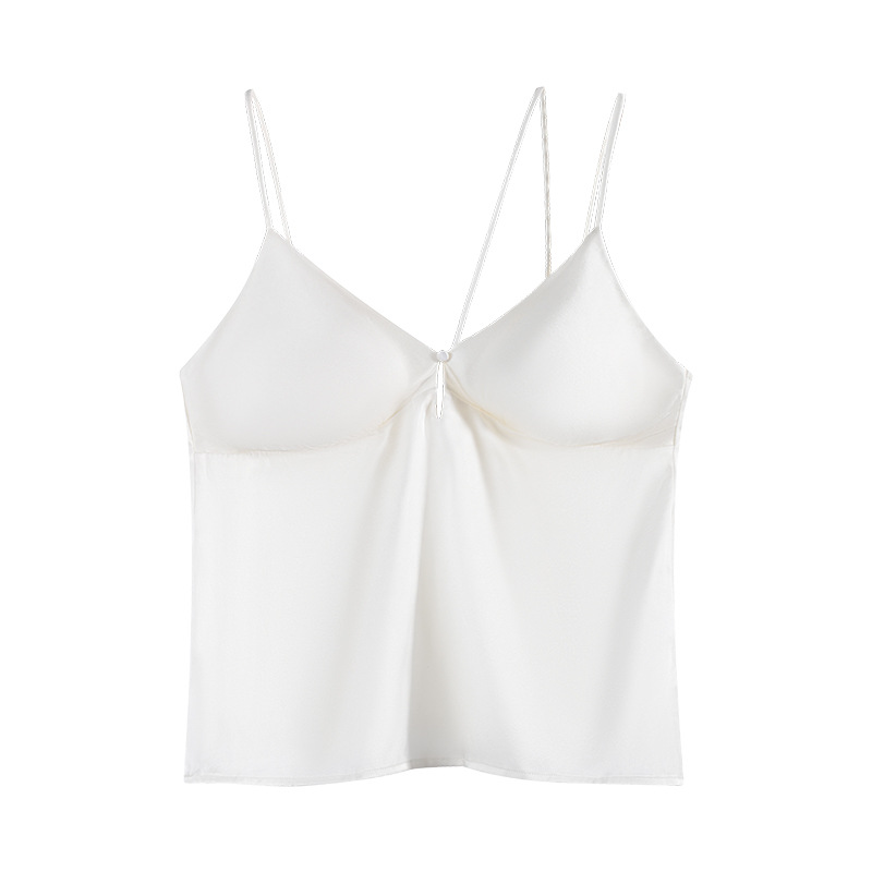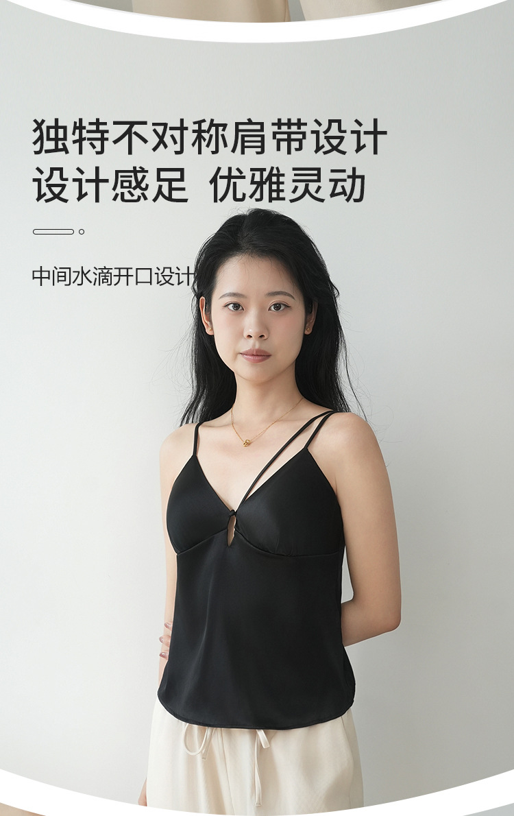 Guolian 스트레치 새틴 실크 버튼 V 넥 서스펜더 멀버리 실크 코스터 투인원 더블 숄더 스트랩 아름다운 등
