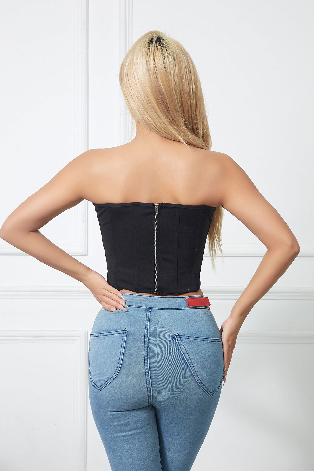 유럽과 미국의 국경을 넘나드는 섹시한 오프숄더 피쉬본 가슴 감싸는 달콤하고 매콤한 디자인 하트 모양의 속이 빈 허리 타이트한 튜브탑
