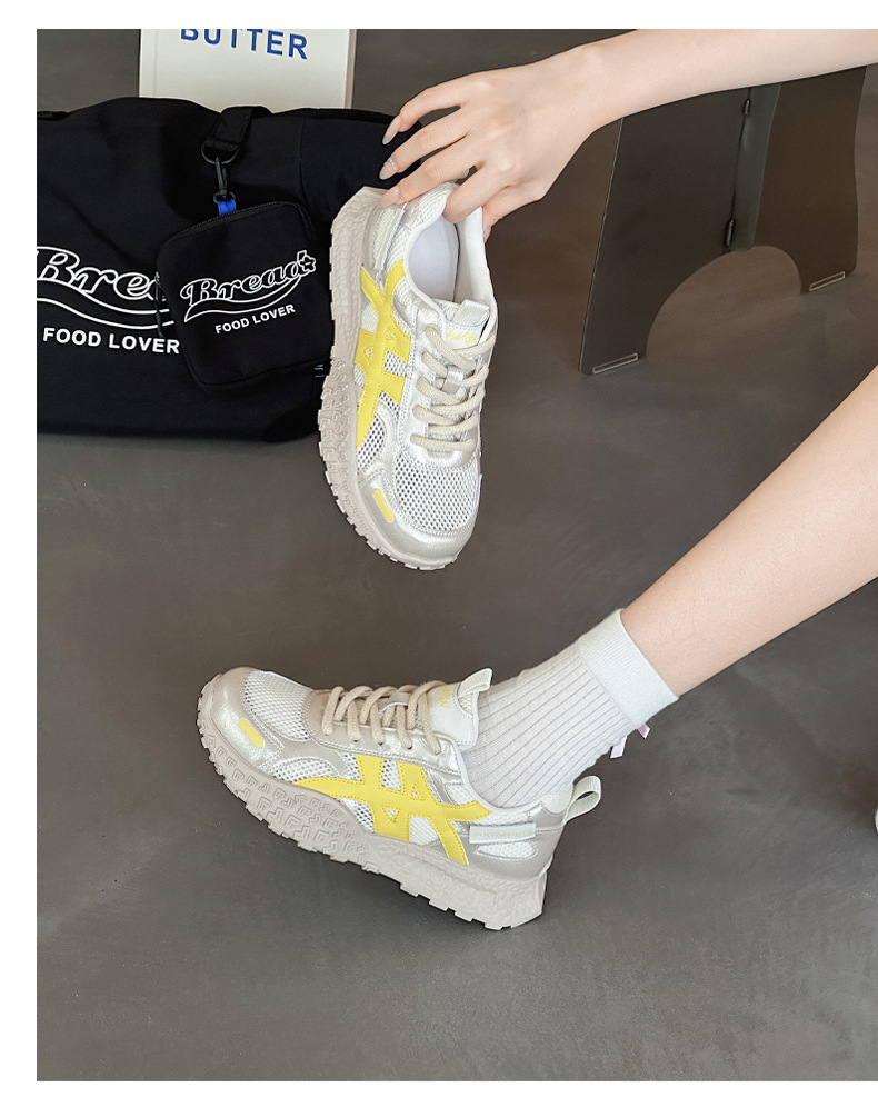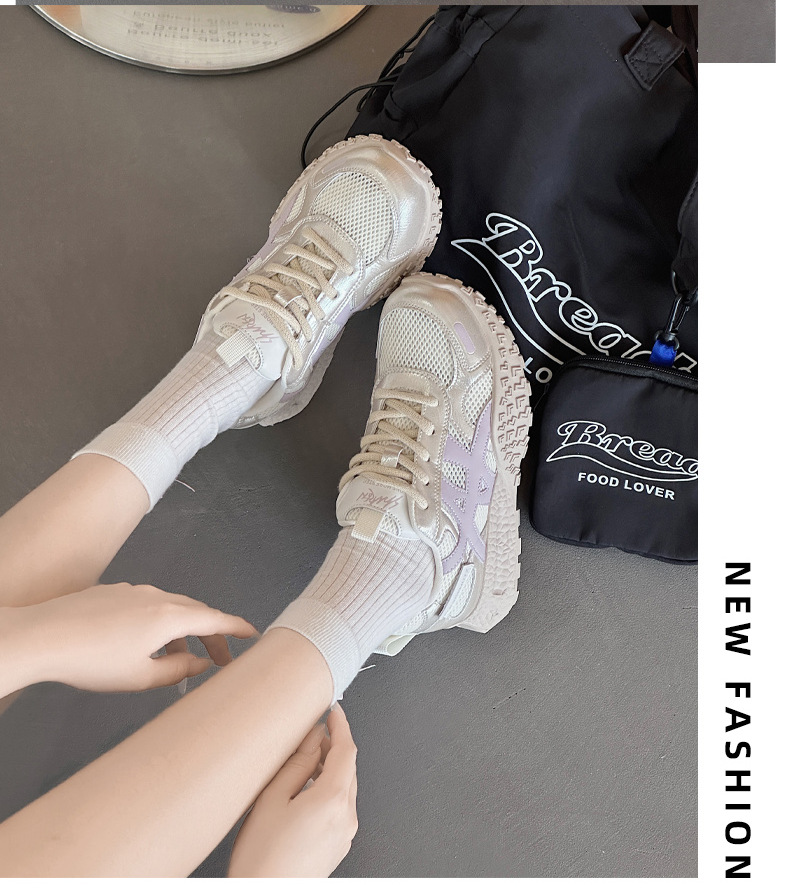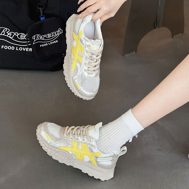 2025 새로운 여름 메쉬 통기성 포레스트 검프 캐주얼 슈즈 여성 두꺼운 밑창 드 트레이닝 토르 슈즈 올 매치 편안한 런닝 슈즈