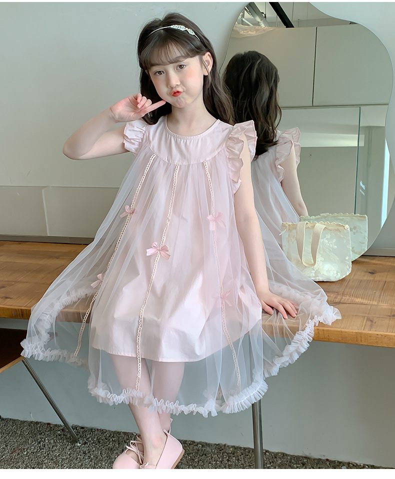 소녀 원피스 여름 2025 새로운 어린이 치마 여름 서양 스타일 유행 베일 스커트 소녀 잘 생긴 공주 스커트스토어 가기