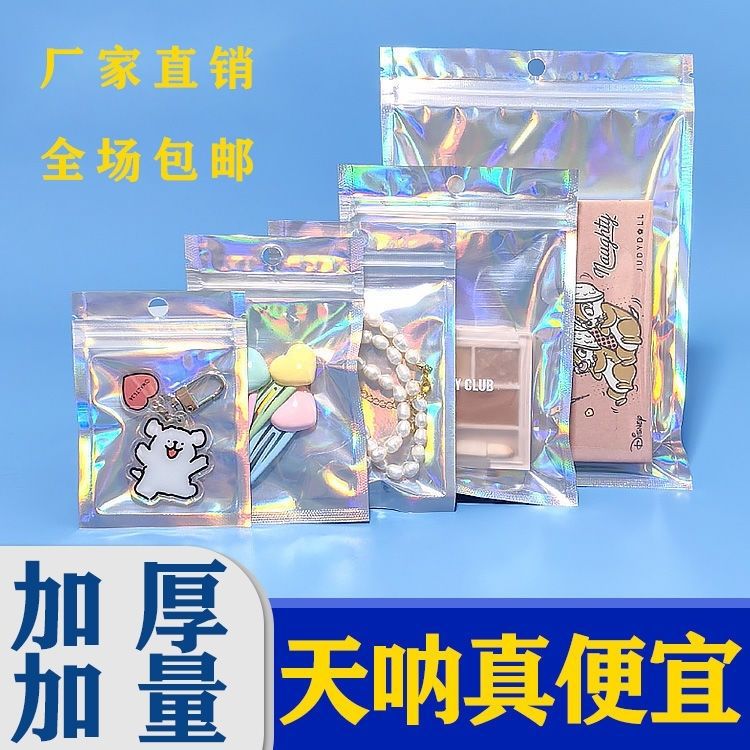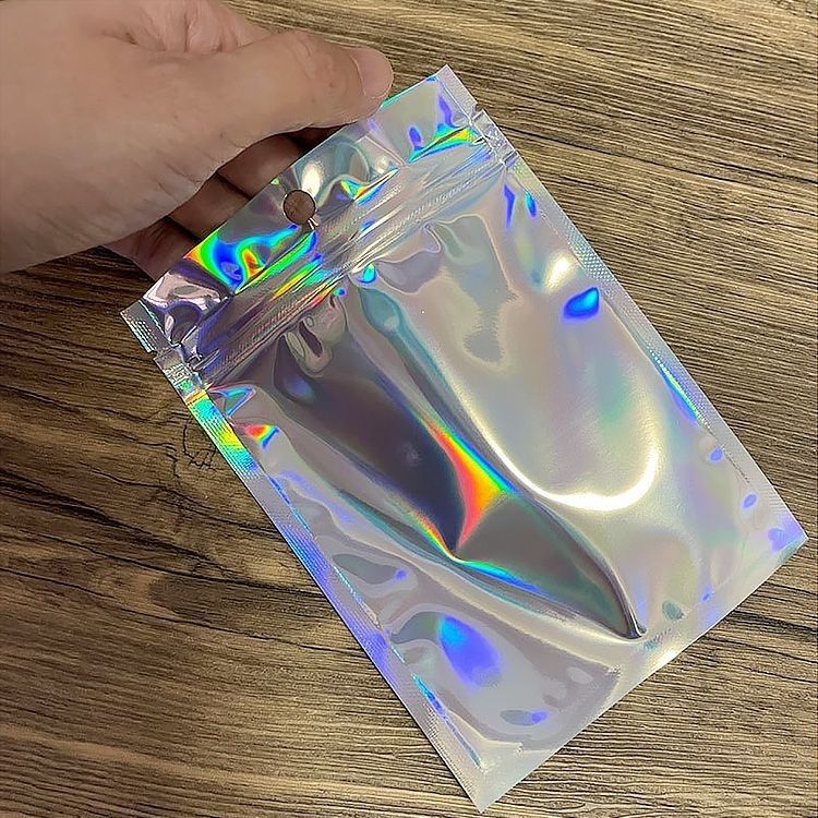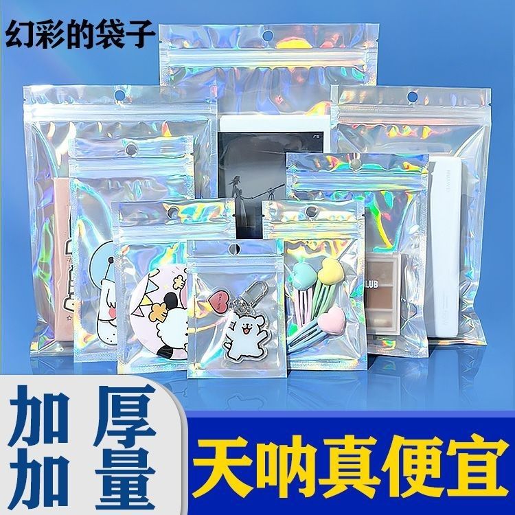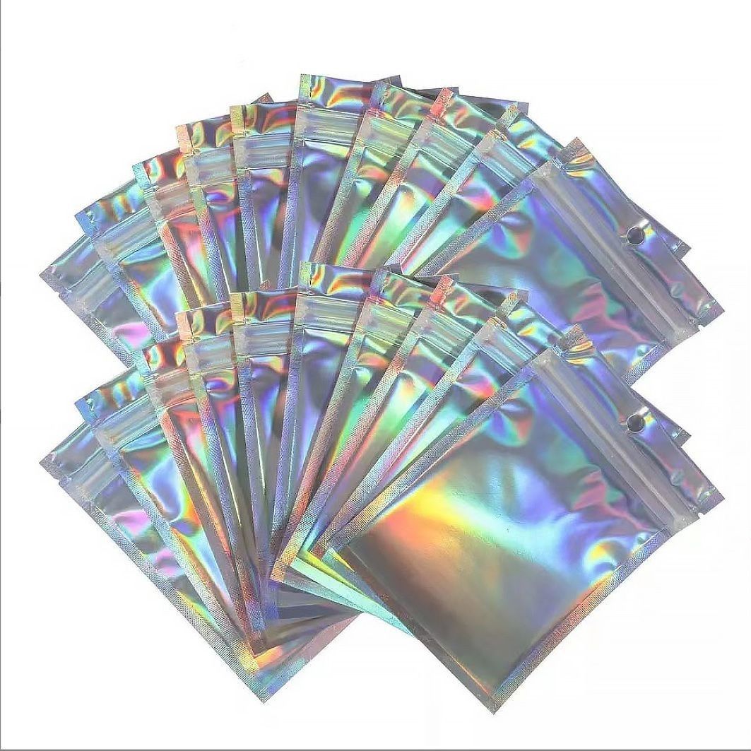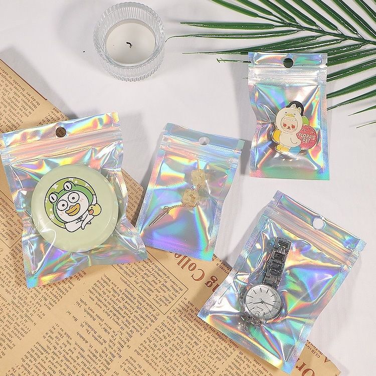 레이저 반투명 다채로운 정전기 방지 지퍼백 로모 소형 카드 무료 곡물 보석 보관 포장 백스토어 가기