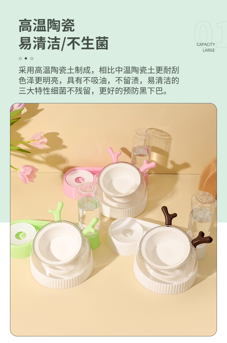 새로운 고양이 그릇 세라믹 더블 그릇 자동 마시는 개 음식 그릇 테디 밥 그릇 애완 동물 마시는 개 피더 용품