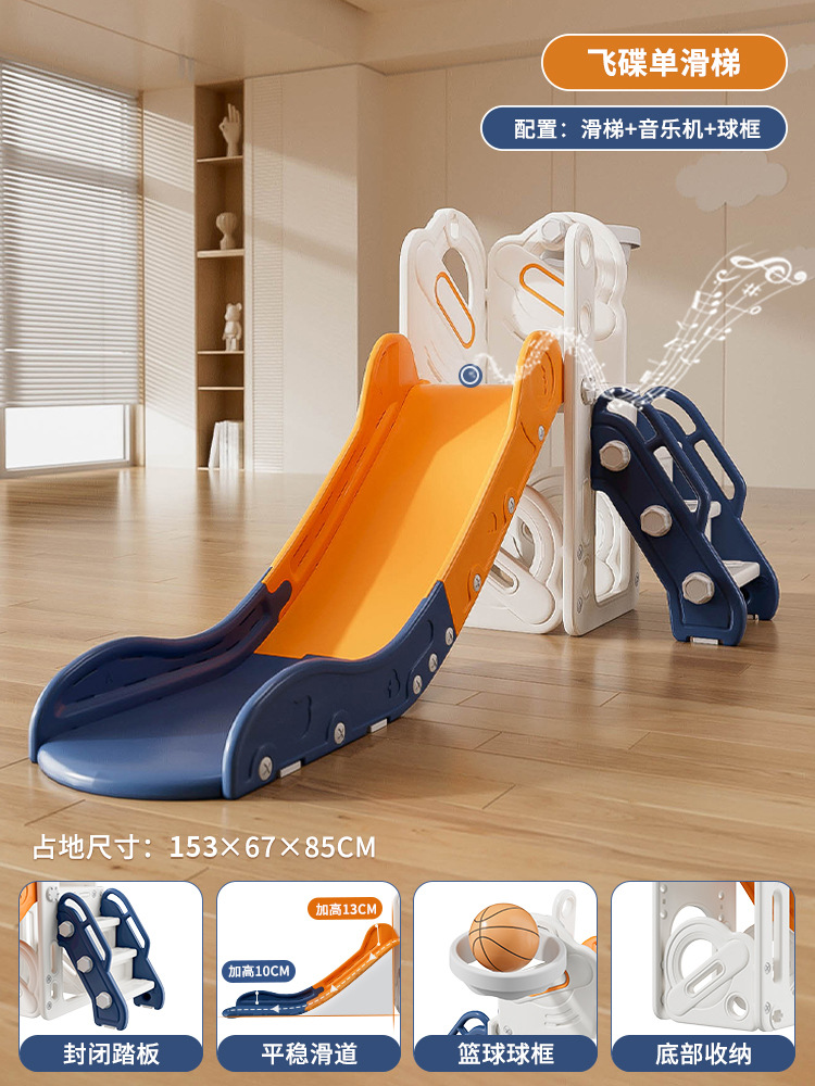 • 비행 접시 싱글 슬라이드 블루 + 볼 프레임 농구 + 음악 [계단은 좌우 교체 가능]