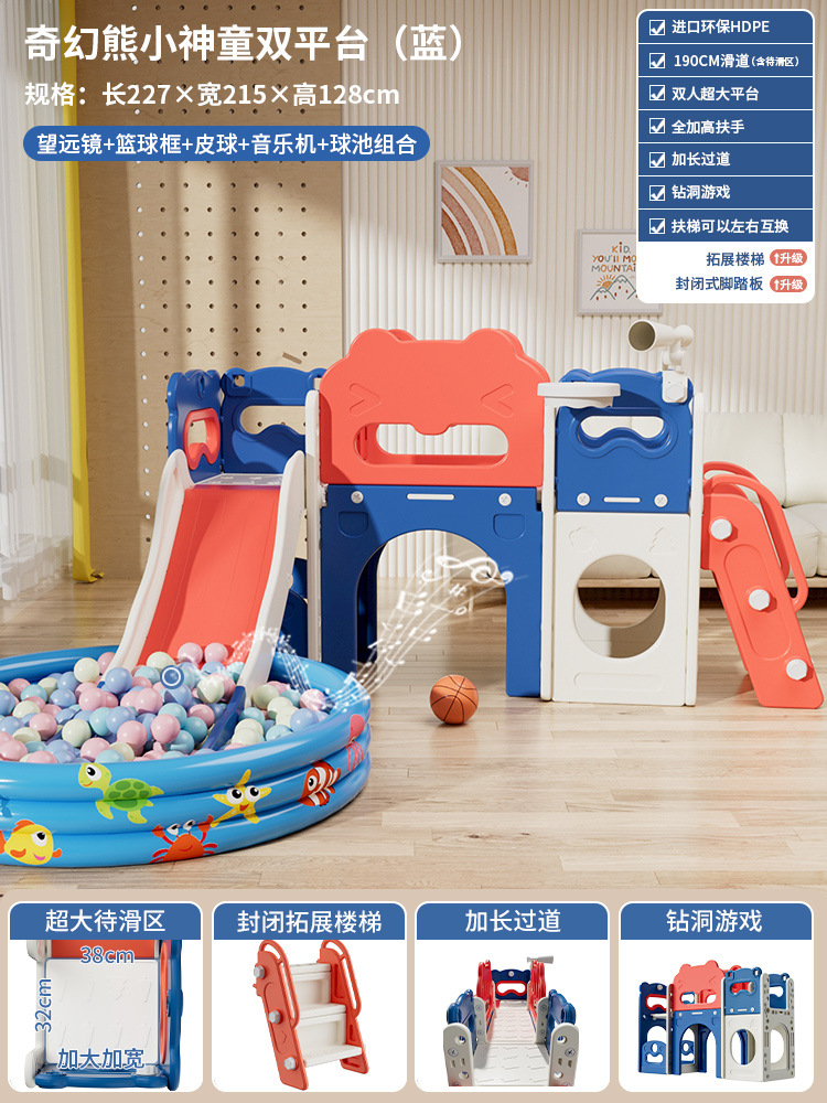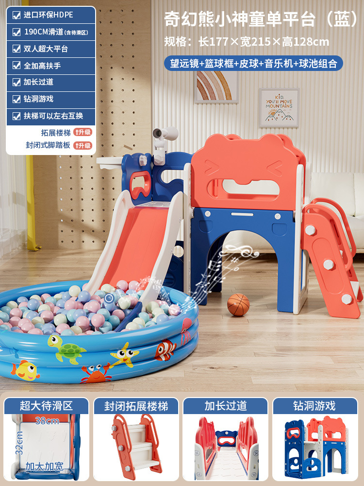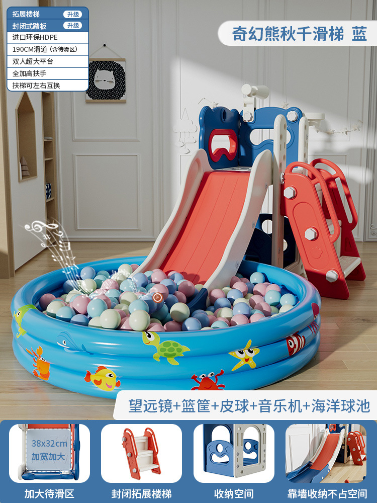 • 판타지 베어 슬라이드 스윙 블루 + 볼 프레임 농구 + 망원경 + 볼 풀 조합 [계단은 좌우 교체 가능]