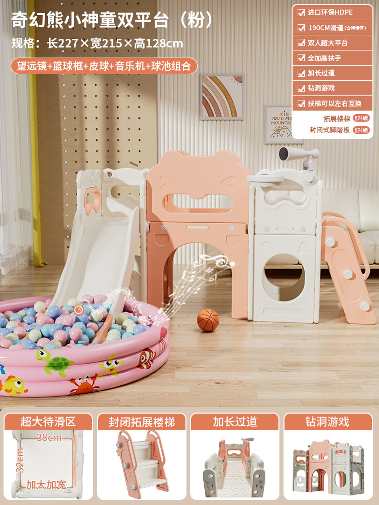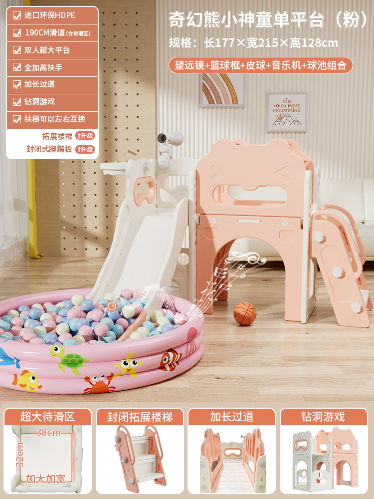 • 판타지베어 싱글슬라이드 핑크 + 볼프레임 농구 + 망원경 + 볼풀 조합 [계단은 좌우 교체 가능]