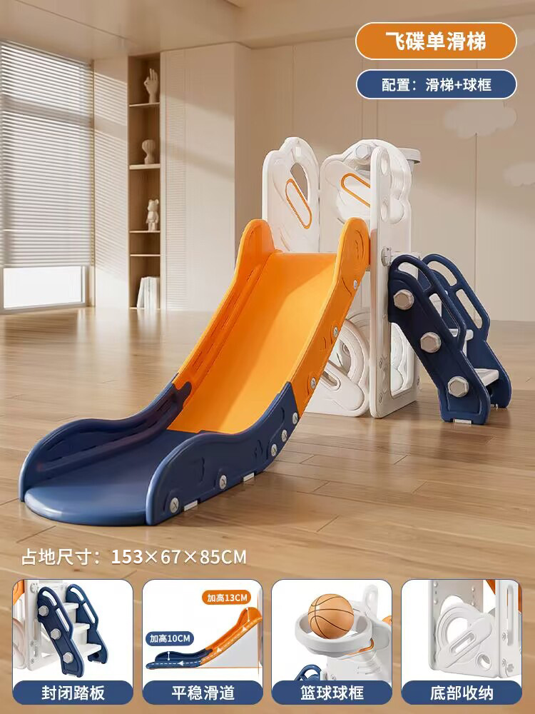 • 비행 접시 싱글 슬라이드 블루 + 볼 프레임 농구 [계단은 좌우 교체 가능]