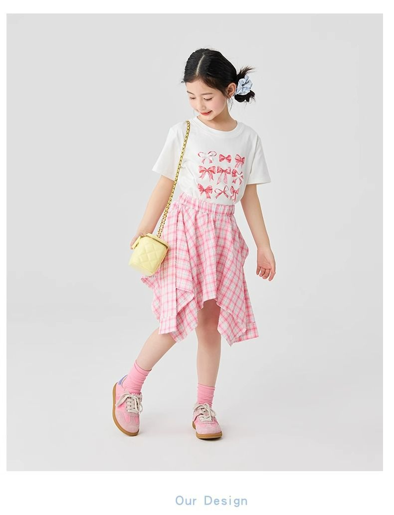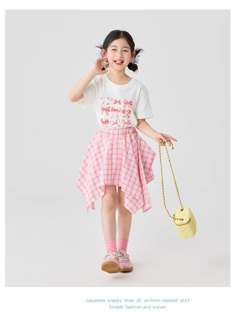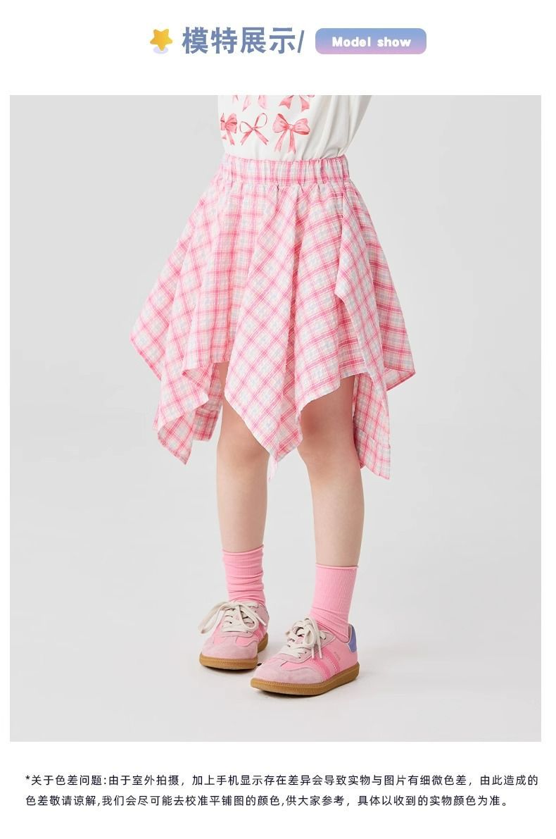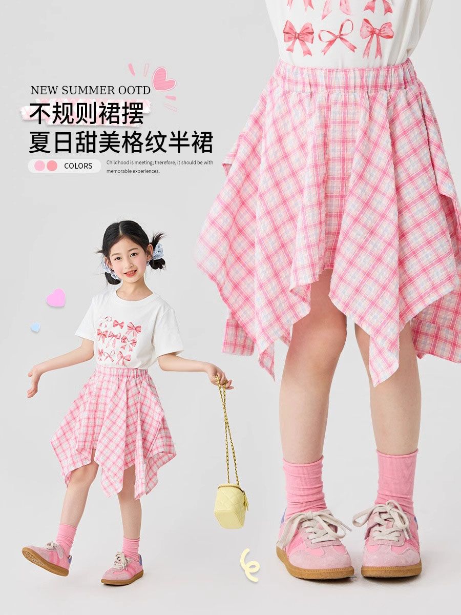 여자 체크 무늬 스커트 2025 여름 새로운 어린이 한국 불규칙한 치마 소녀 여름 패션 스커트스토어 가기
