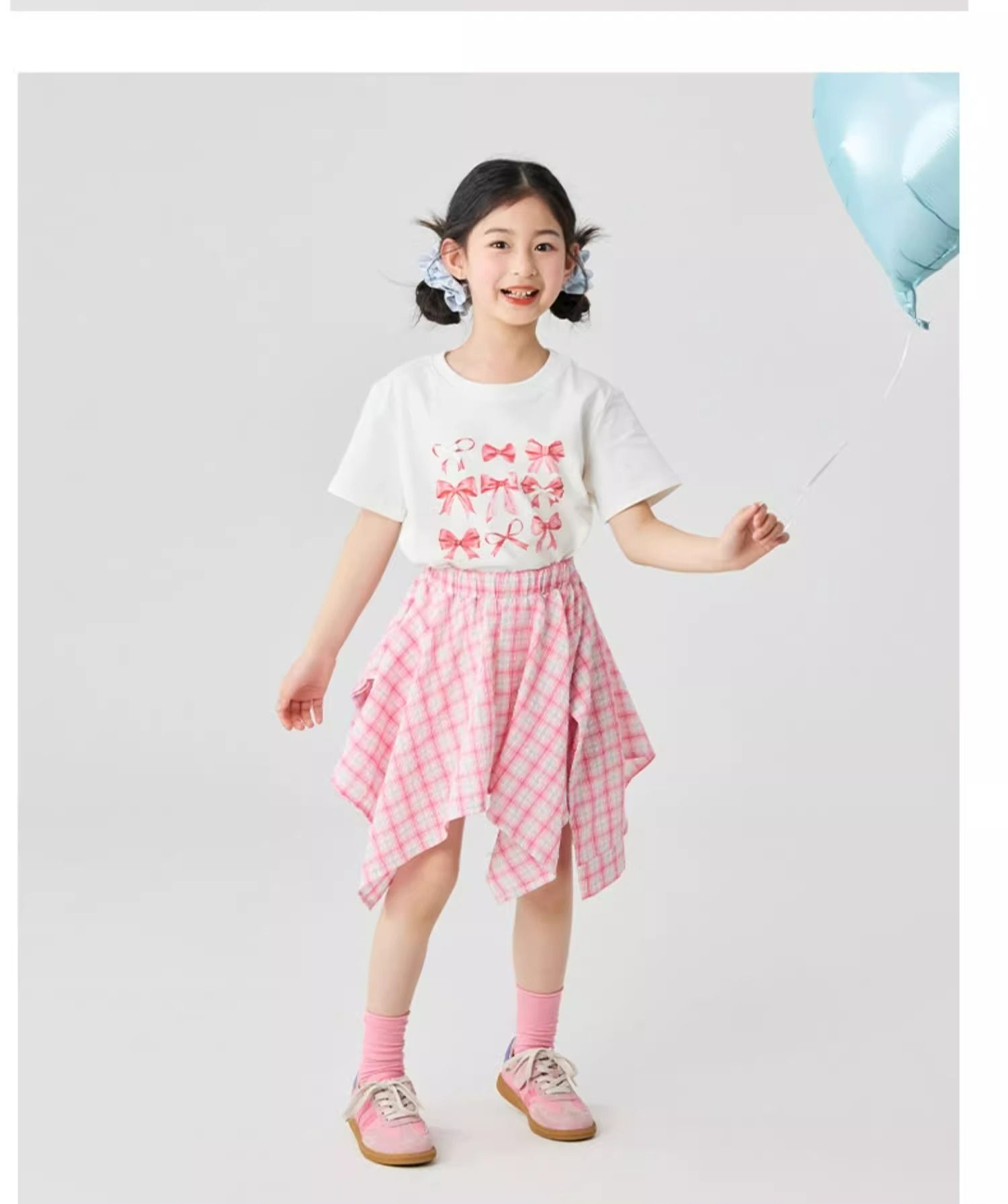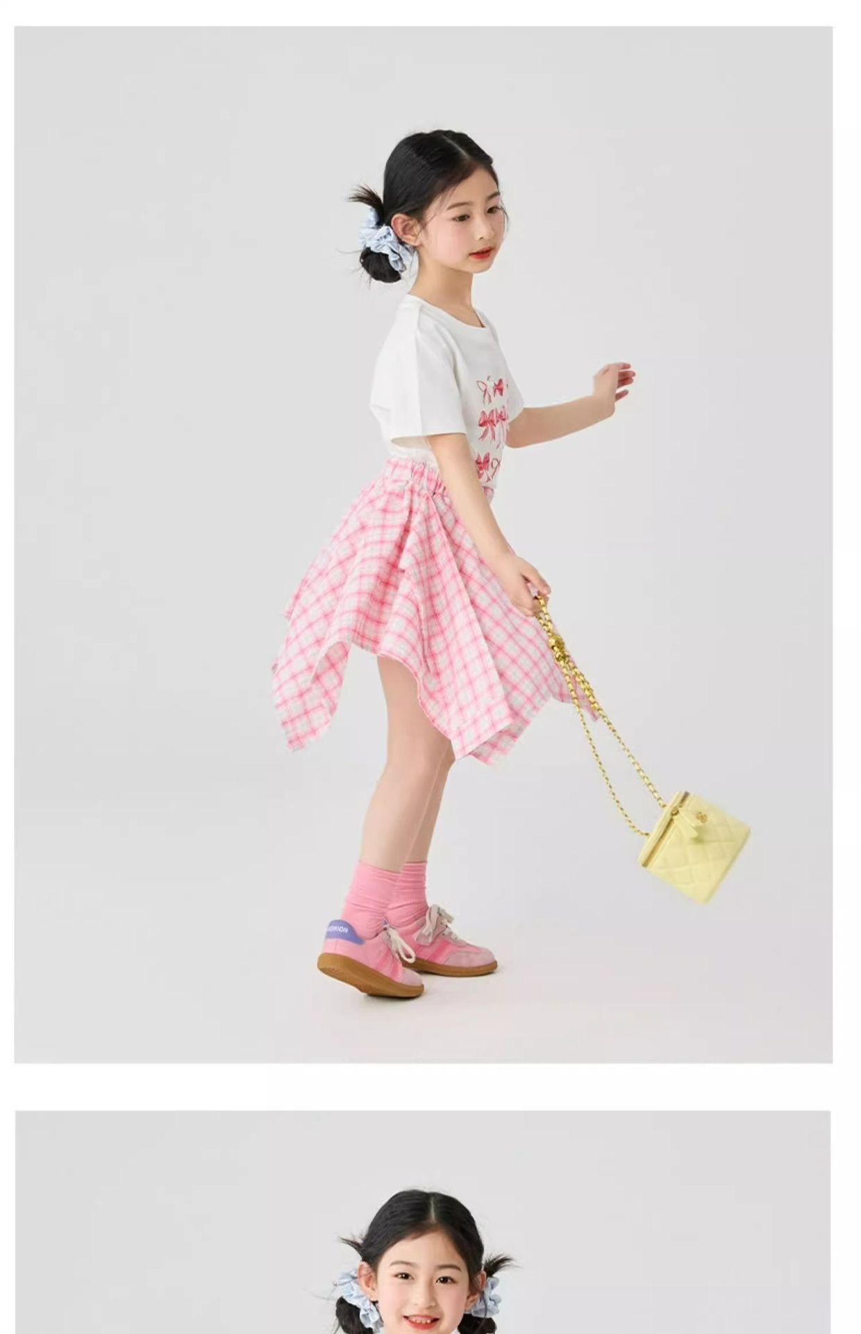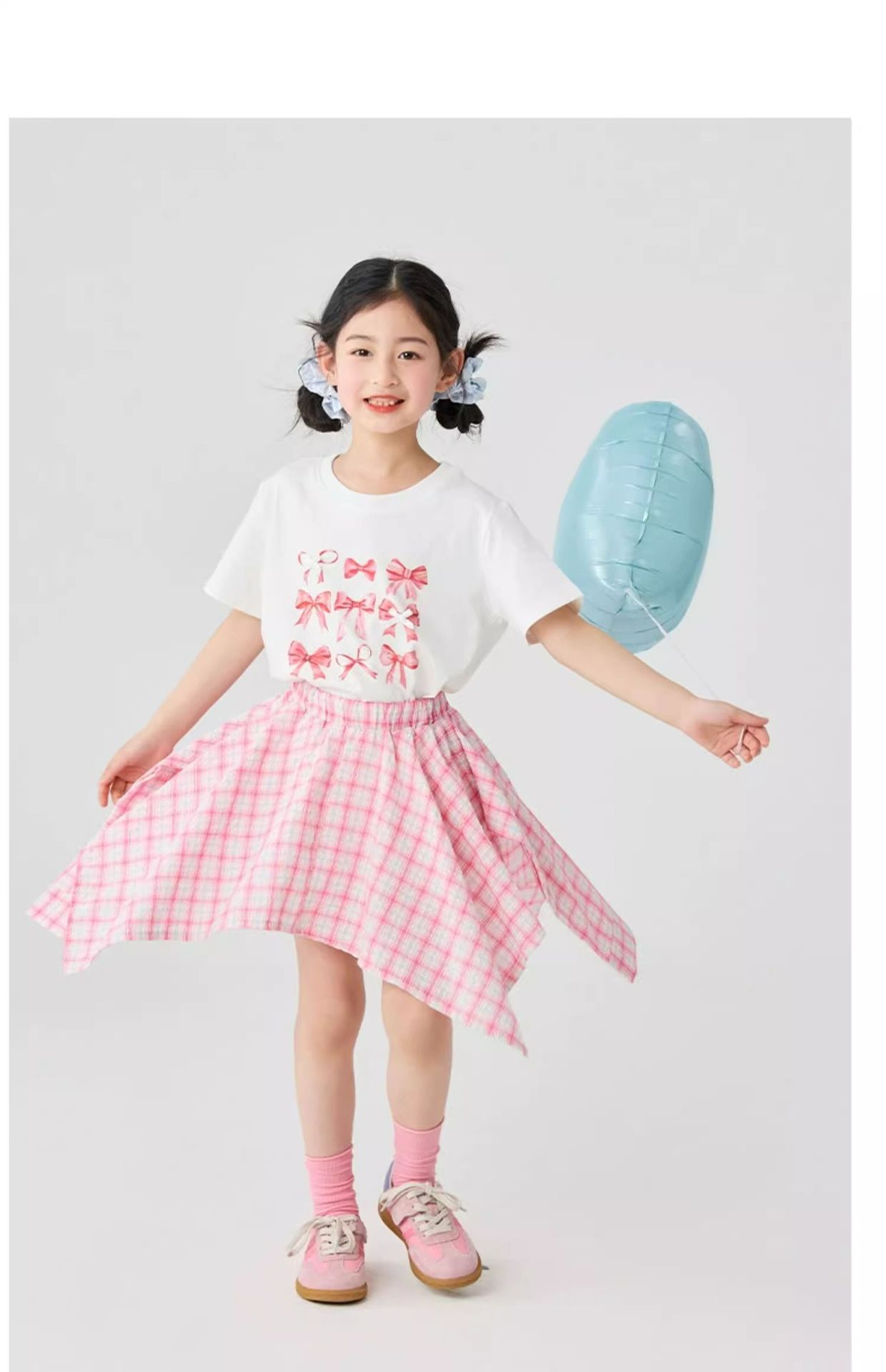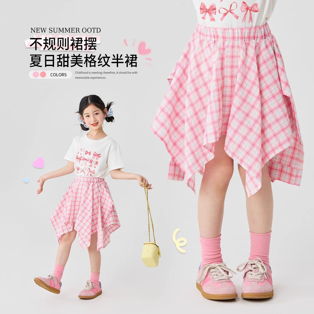 여자 체크 무늬 스커트 2025 여름 새로운 어린이 한국 불규칙한 치마 소녀 여름 패션 스커트스토어 가기