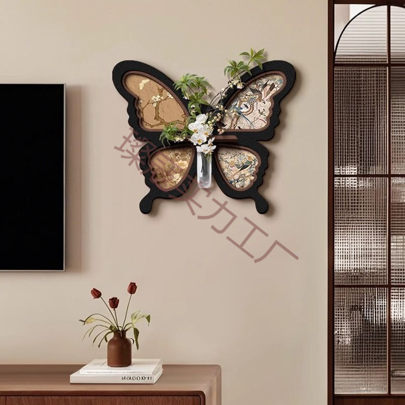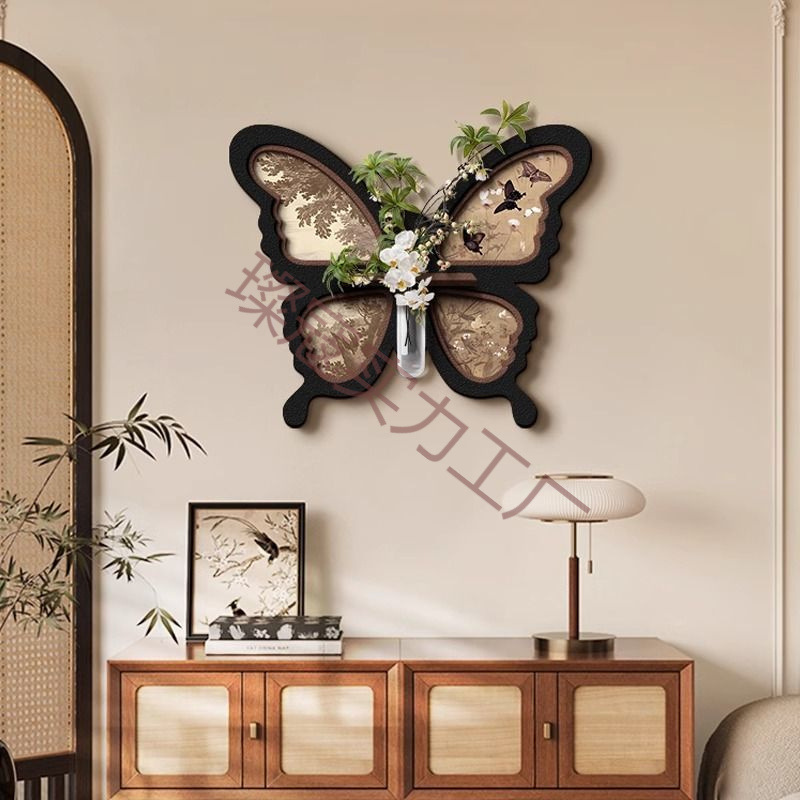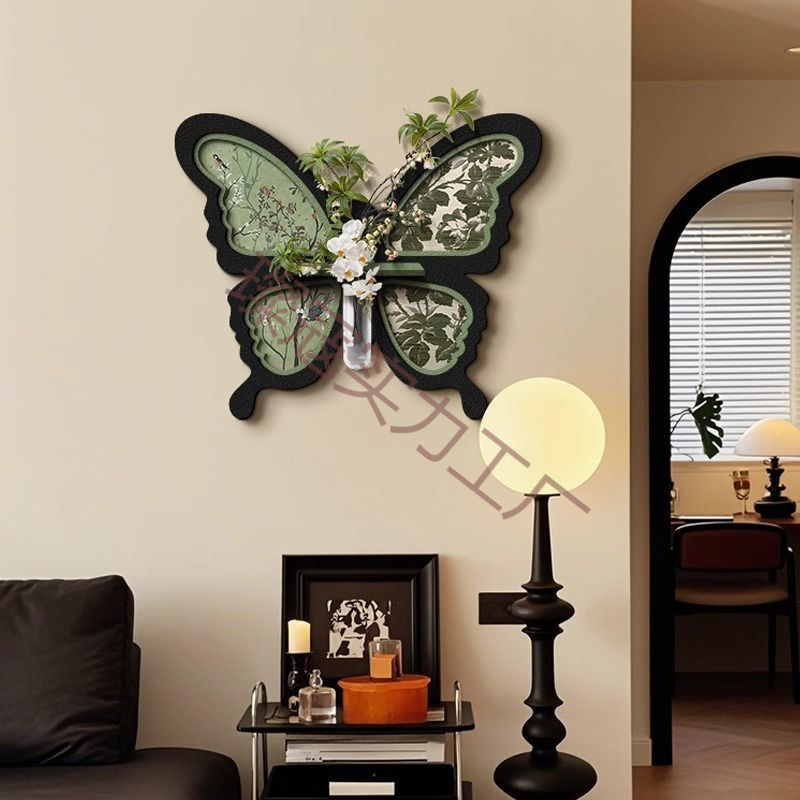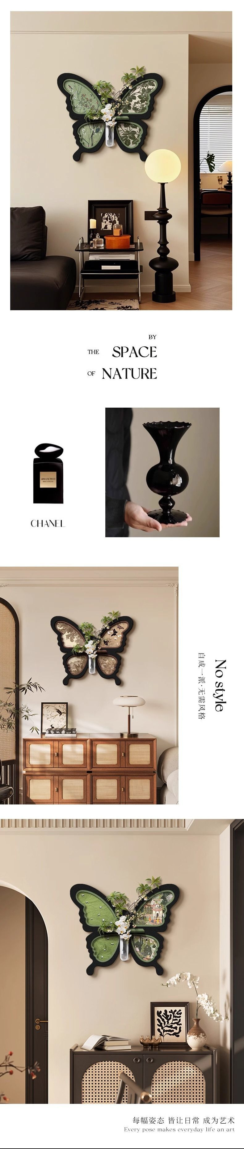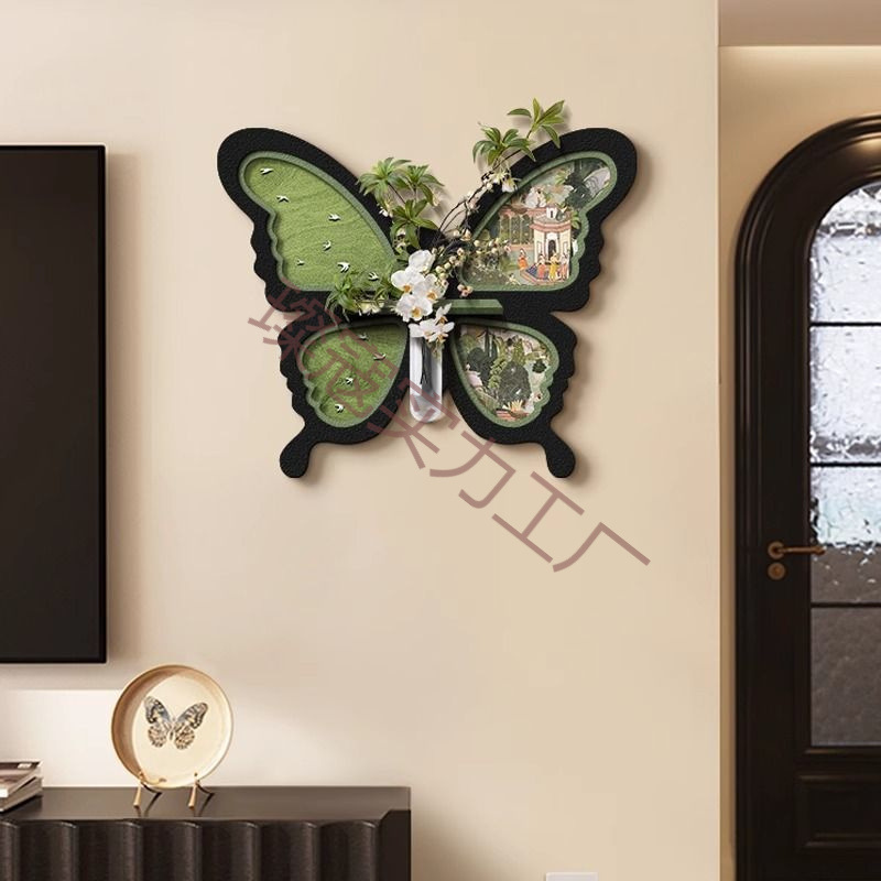 2025 새로운 크리스탈 도자기 조각 중세 스타일 수경 녹색 식물 TV 배경 벽 장식 그림 프랑스 나비 거실 교수형