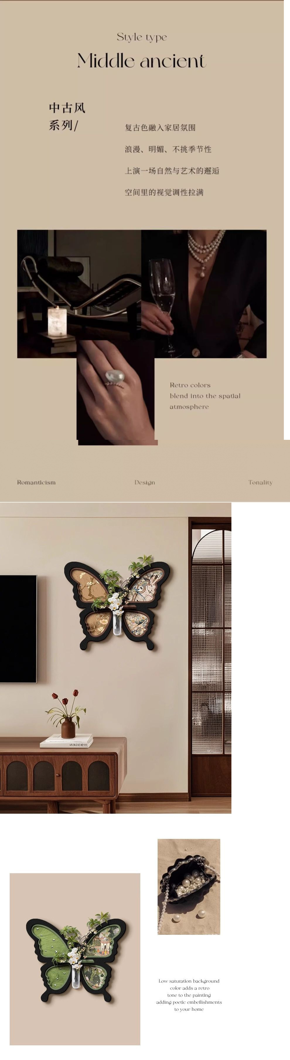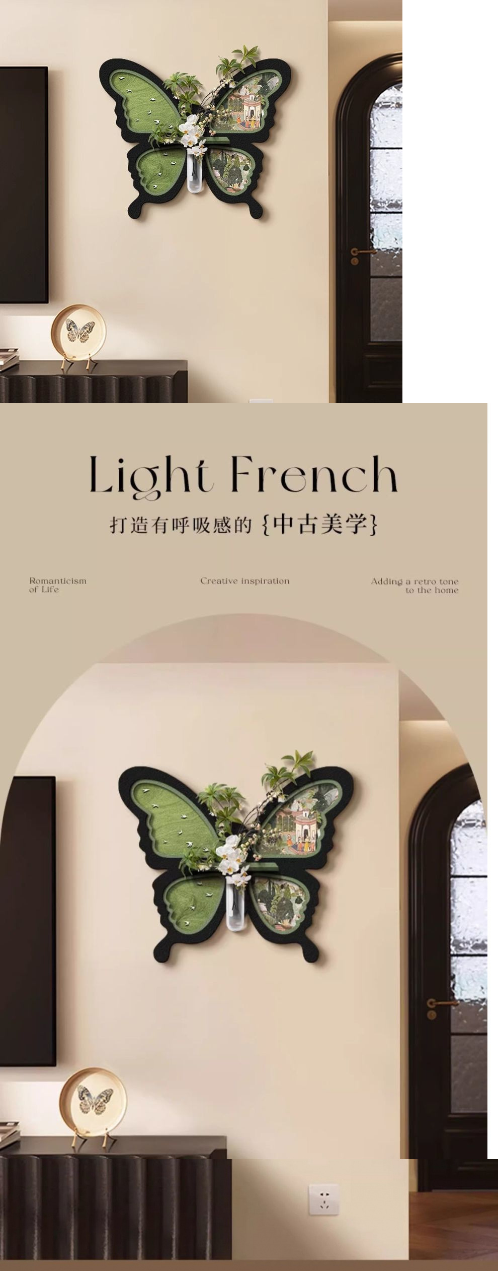 2025 새로운 크리스탈 도자기 조각 중세 스타일 수경 녹색 식물 TV 배경 벽 장식 그림 프랑스 나비 거실 교수형스토어 가기