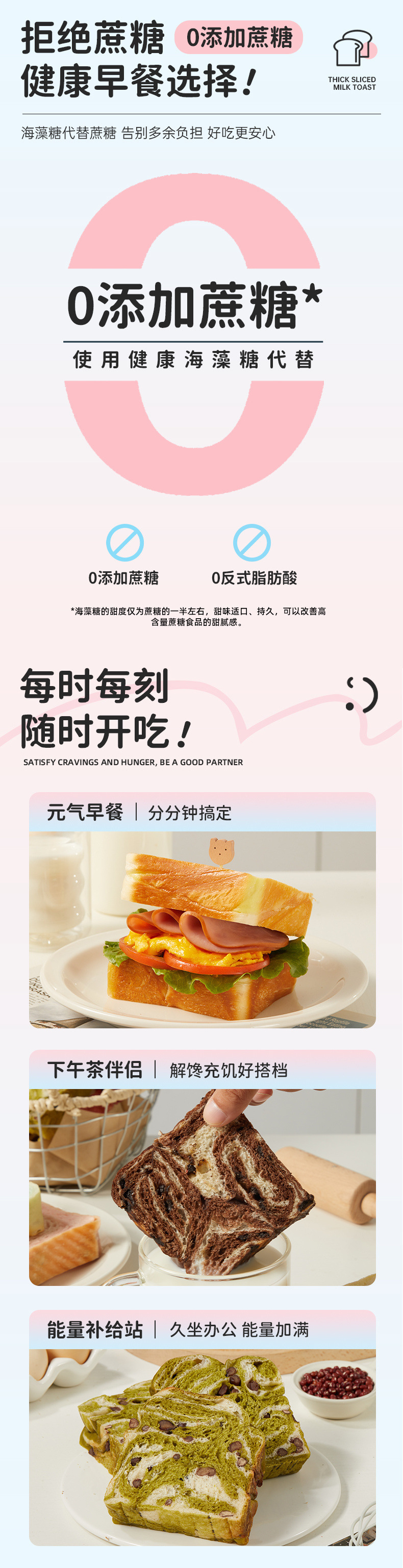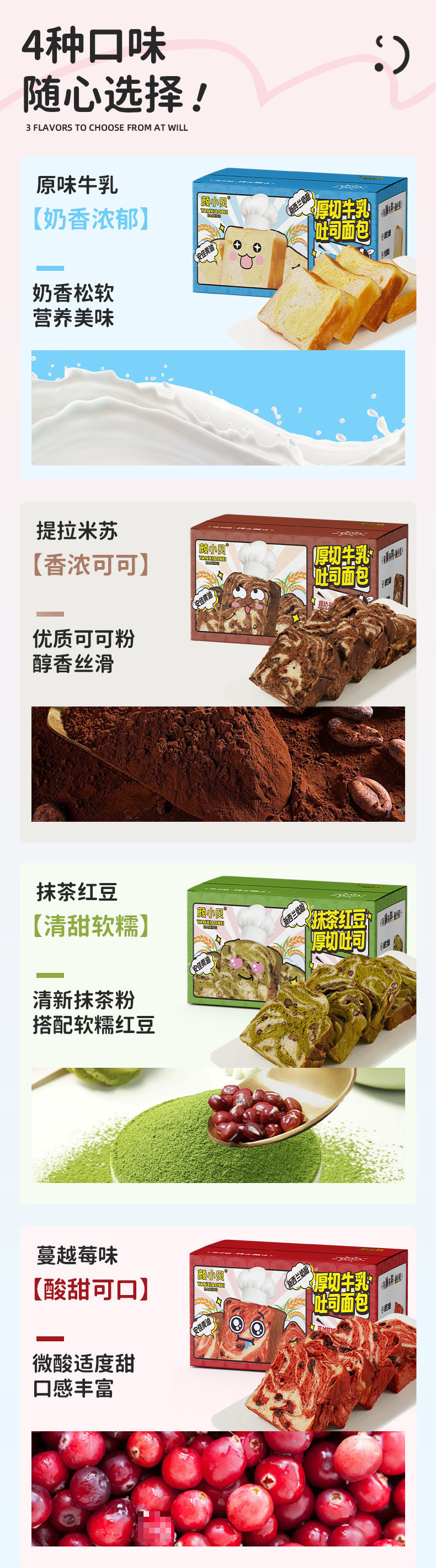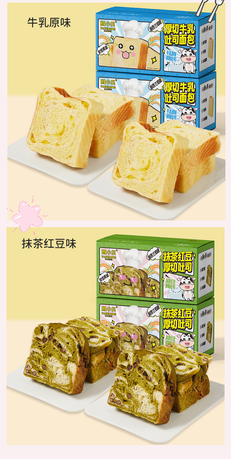 Yan Xiaobei 버터 우유 두껍게 자른 토스트 빵 손으로 찢은 매우 두꺼운 말차 케이크 아침 식사 페이스트리 식사 대체 필수품