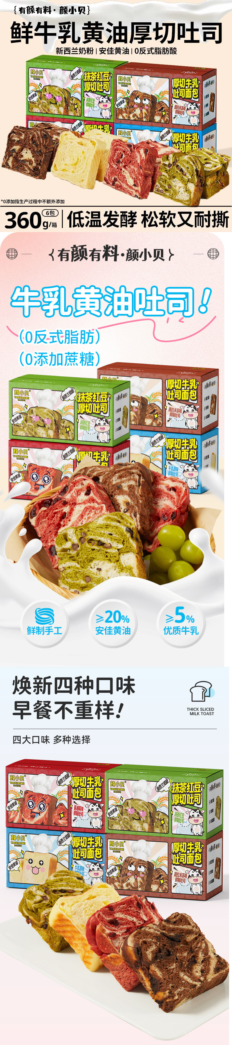 • 생우유 [버터 두껍게 썬 토스트] 0 자당 첨가 - [오리지널맛*1+말차팥맛*1] 컬러박스 2개/720G
