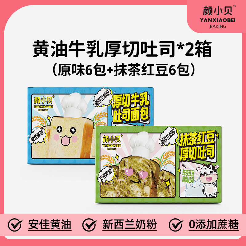 Yan Xiaobei 버터 우유 두껍게 자른 토스트 빵 손으로 찢은 매우 두꺼운 말차 케이크 아침 식사 페이스트리 식사 대체 필수품스토어 가기