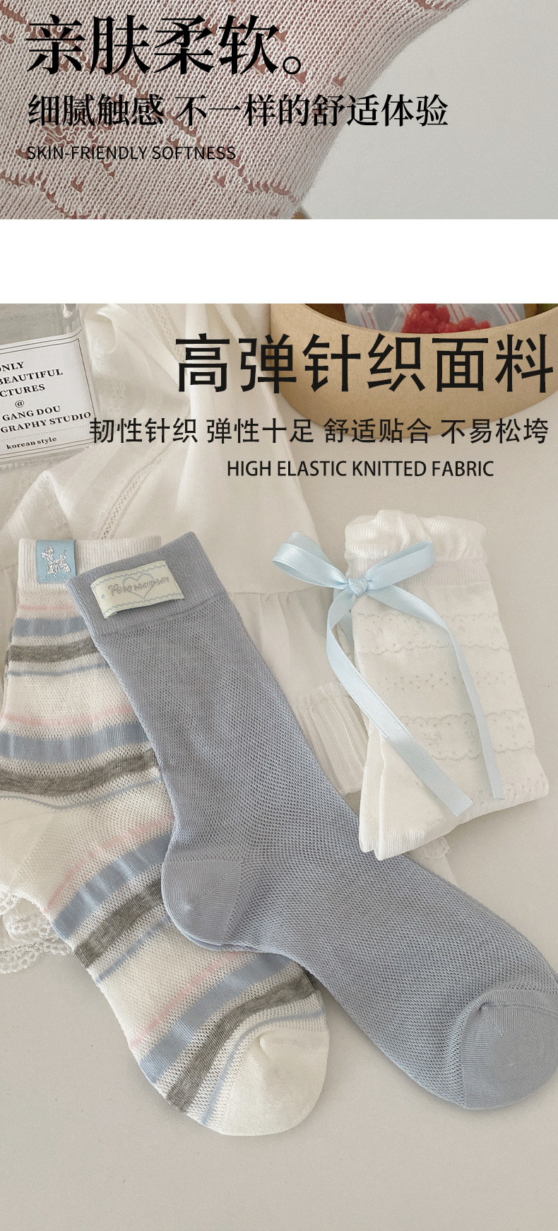 파란색과 회색 여름 소녀 메시 뼈없는 양말 어린이 중간 튜브 양말 힐 활 중공 보석 미드 튜브 양말