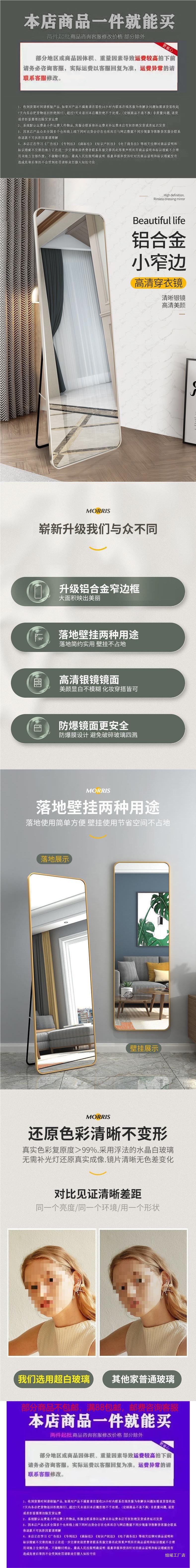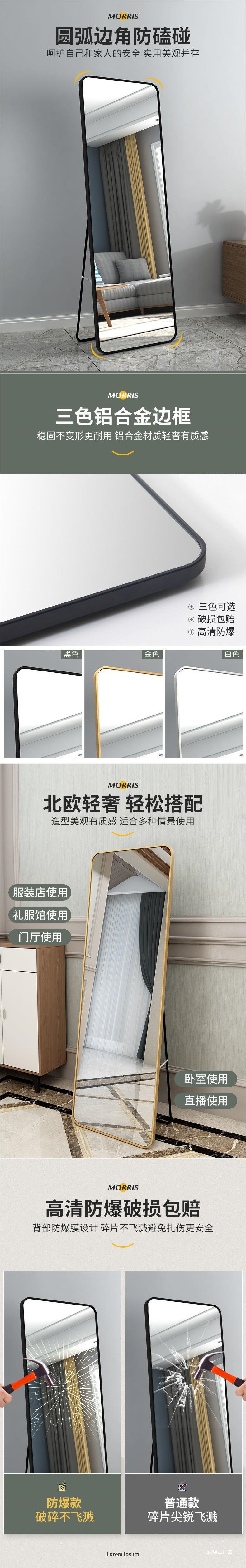 드레싱 거울 전신 피팅 거울 바닥 거울 의류 매장 크고 얇은 뷰티 침실 라이브 거울 드레싱 금속