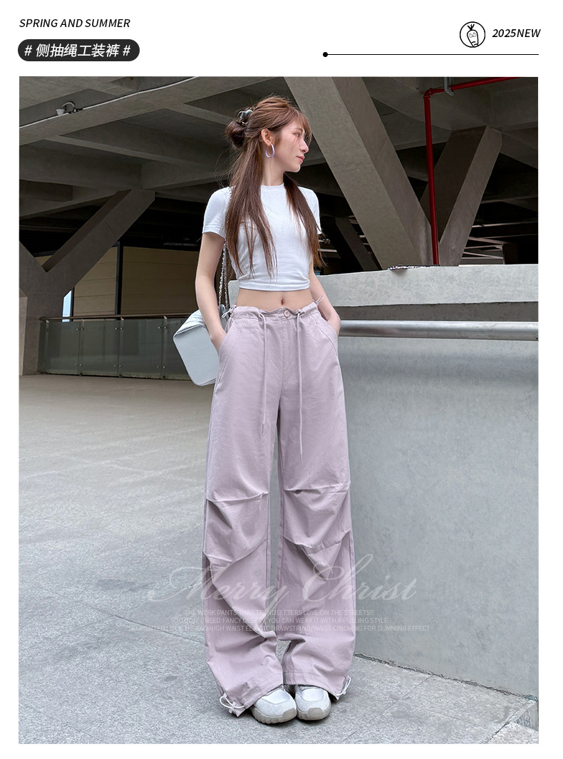 【틱톡 인기상품】여성용 아메리칸 스타일 작업복 바지 여름 얇은 슬림핏 아웃도어 다용도 캐주얼 바지