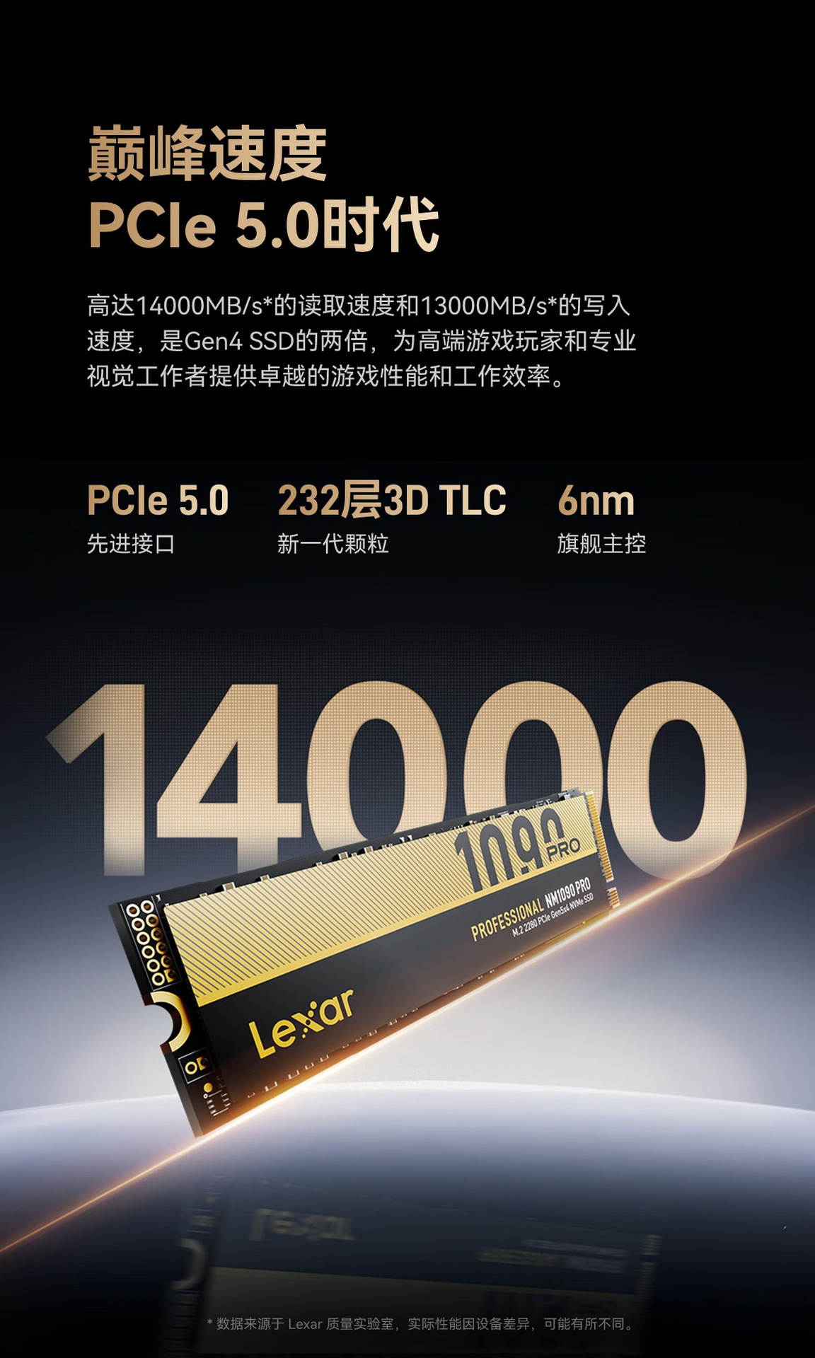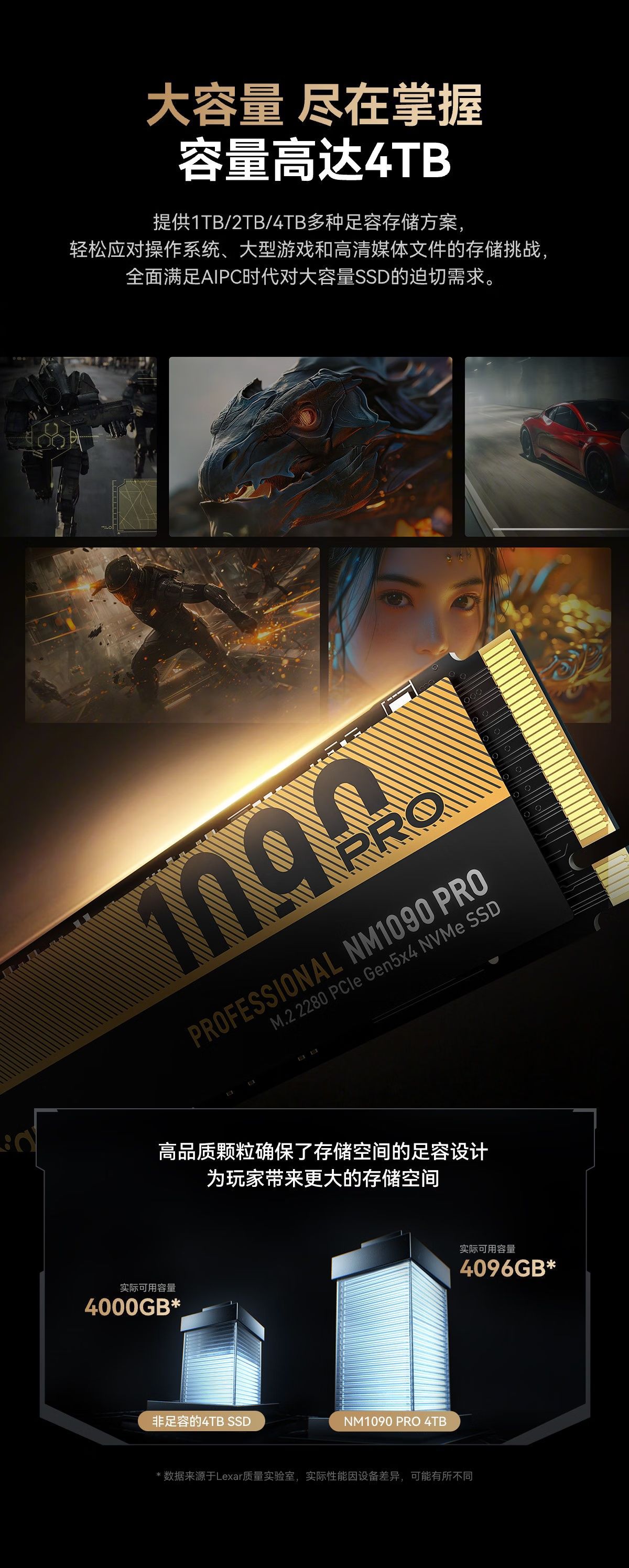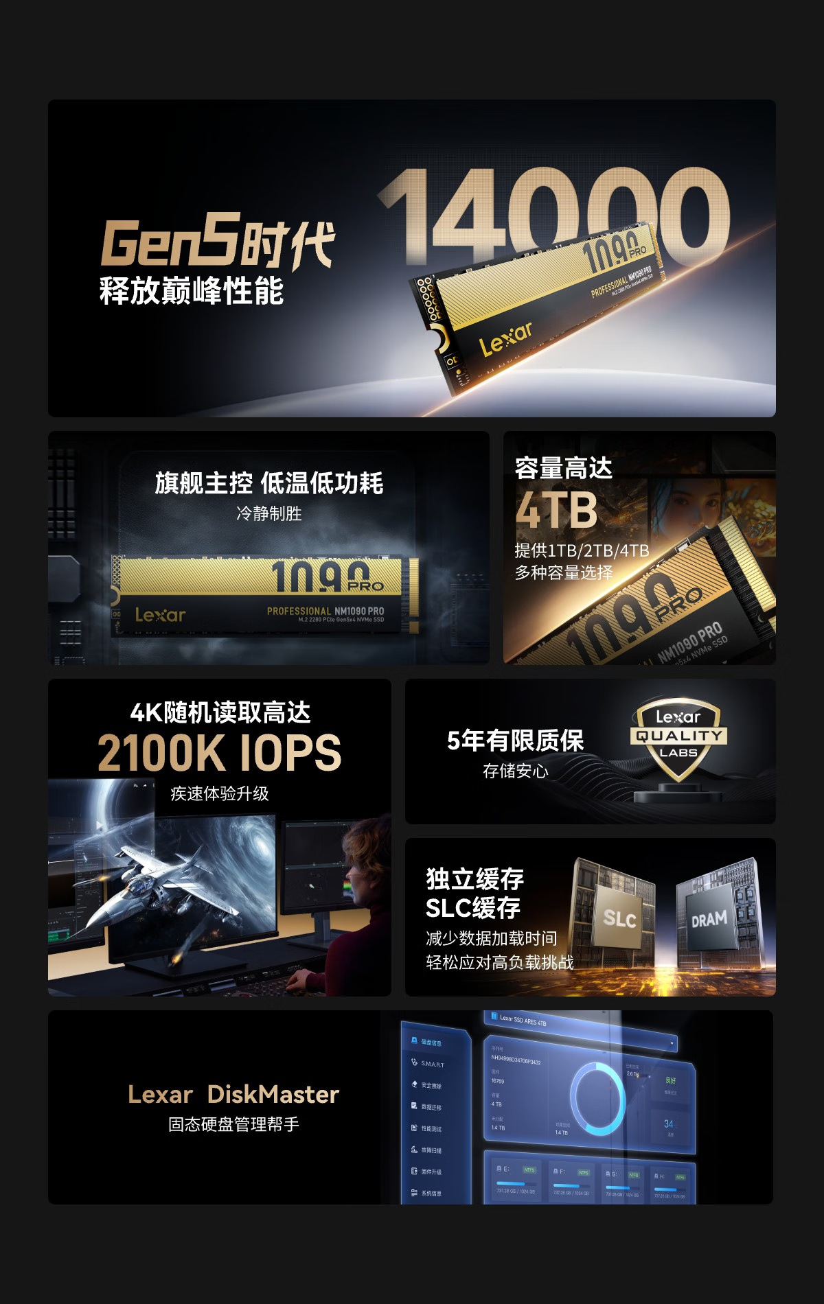 Lexar NM1090PRO2TB SSD 솔리드 스테이트 드라이브 M.2 인터페이스 PCIe 5.0x4 읽기 속도 14000MB/s
