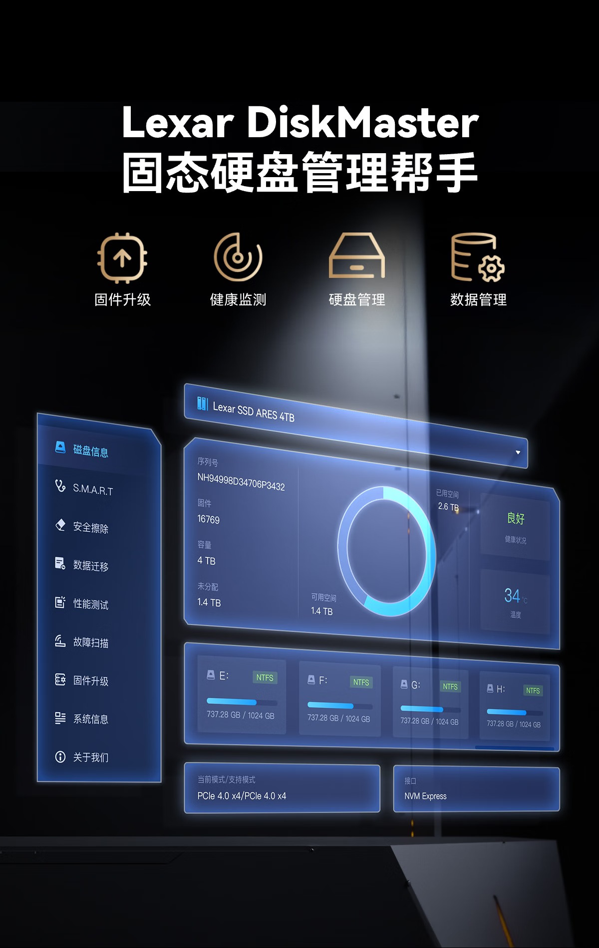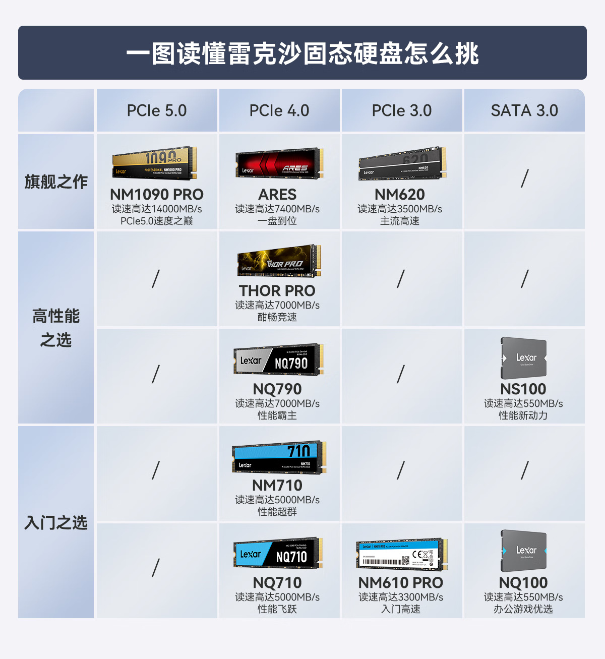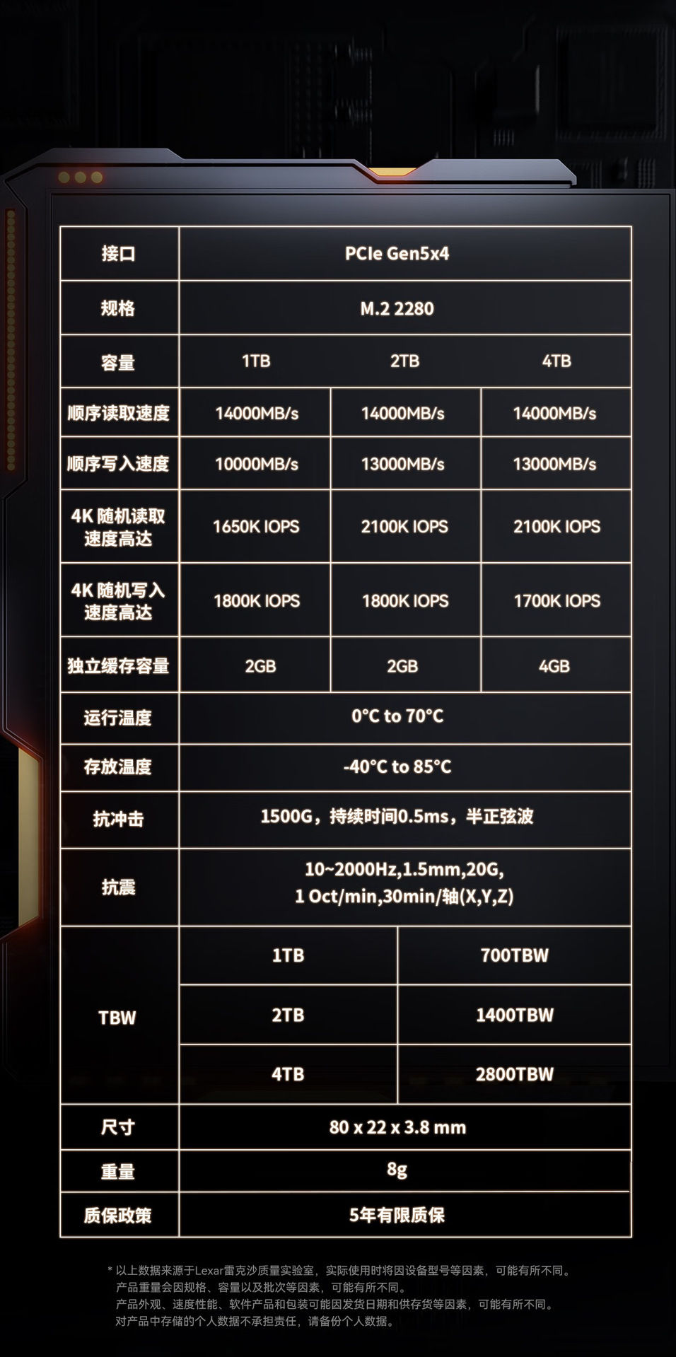 Lexar NM1090PRO2TB SSD 솔리드 스테이트 드라이브 M.2 인터페이스 PCIe 5.0x4 읽기 속도 14000MB/s
