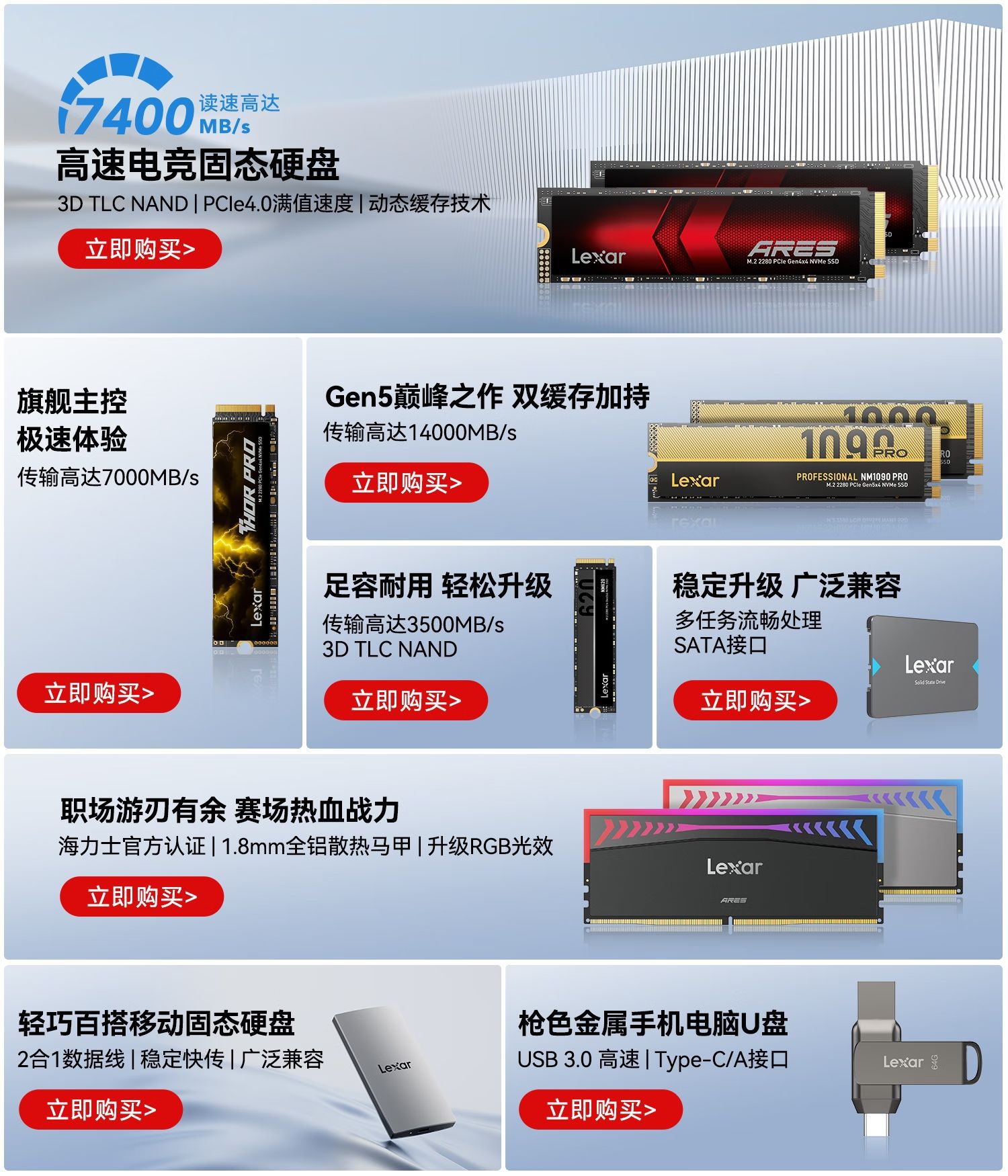 Lexar NM1090PRO2TB SSD 솔리드 스테이트 드라이브 M.2 인터페이스 PCIe 5.0x4 읽기 속도 14000MB/s스토어 가기