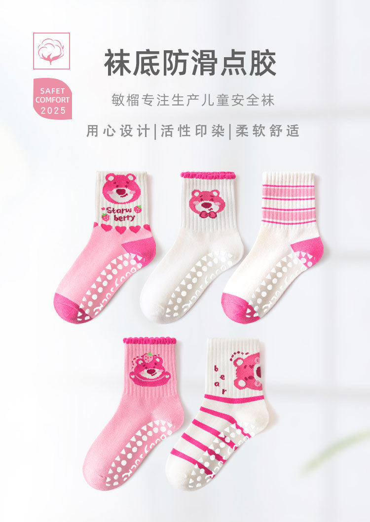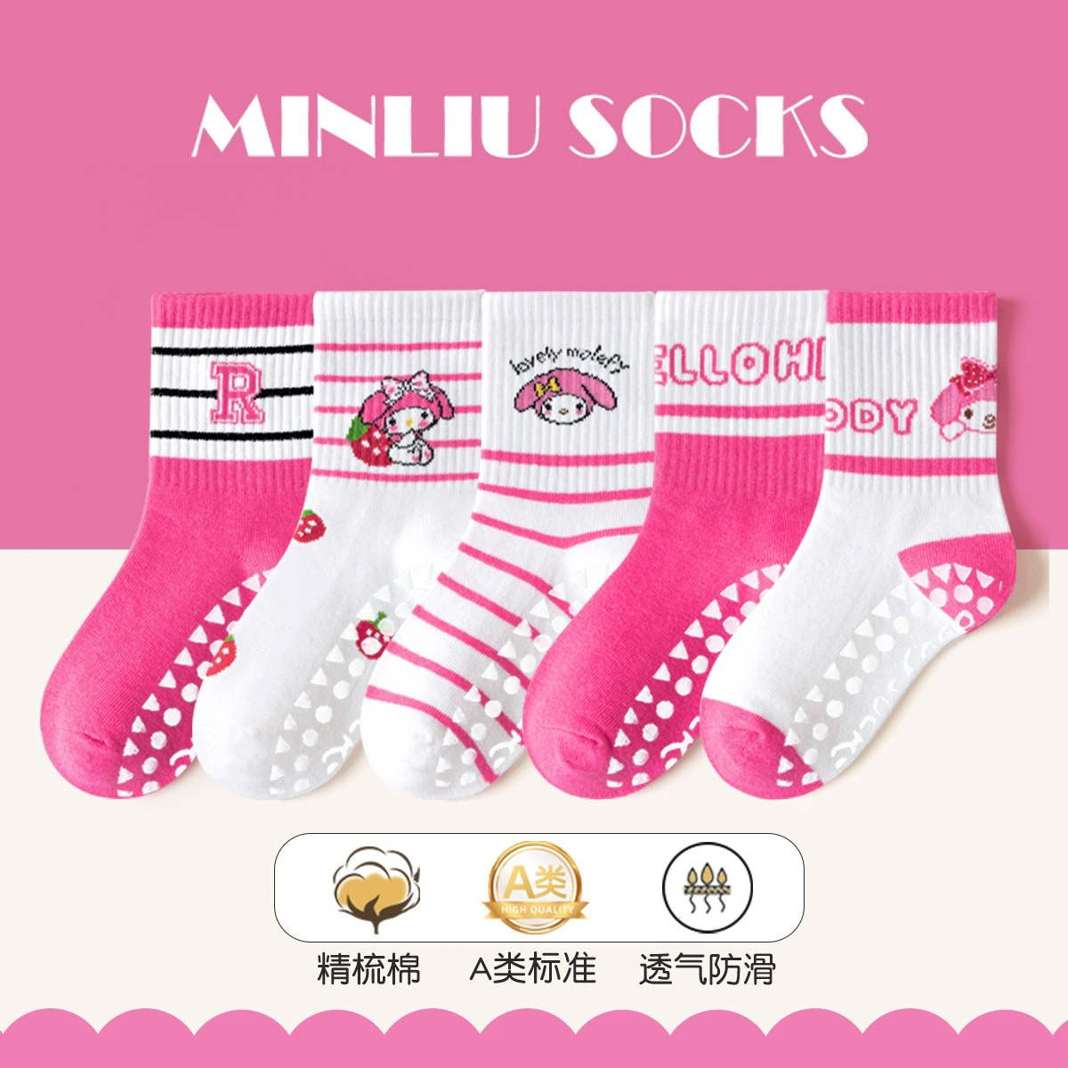 2025 봄, 가을 바닥 양말 땀 흡수 및 통기성 높은 고무 밴드 귀여운 미끄럼 방지 트렌디 양말 중대형 어린이 스포츠 종아리 중반면 양말