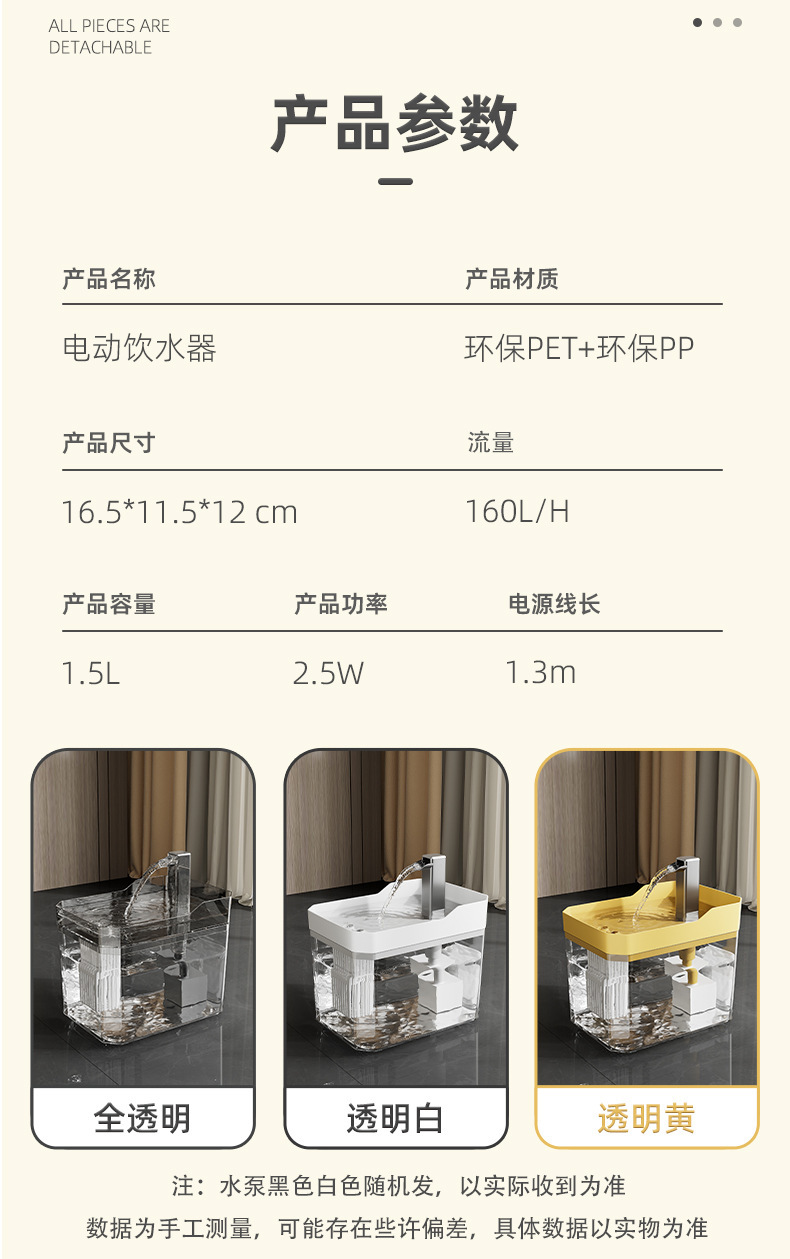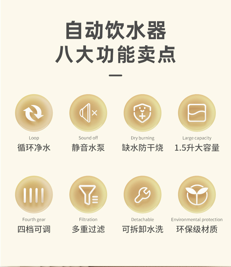 本产品需一直插电使用,相比外置锂电池类型的饮水器续航更久 更稳定,也无需每天更换充电宝/锂电池。