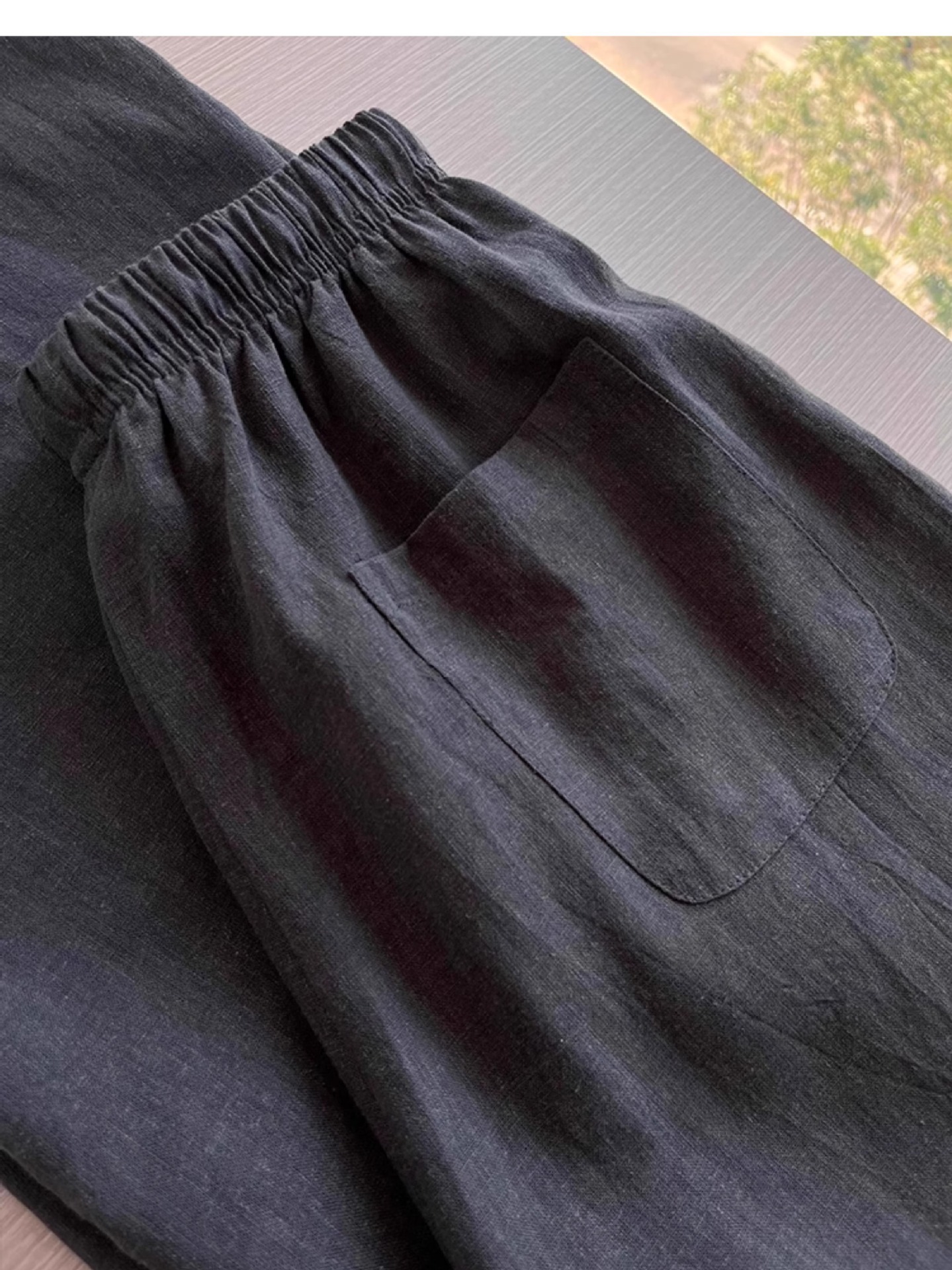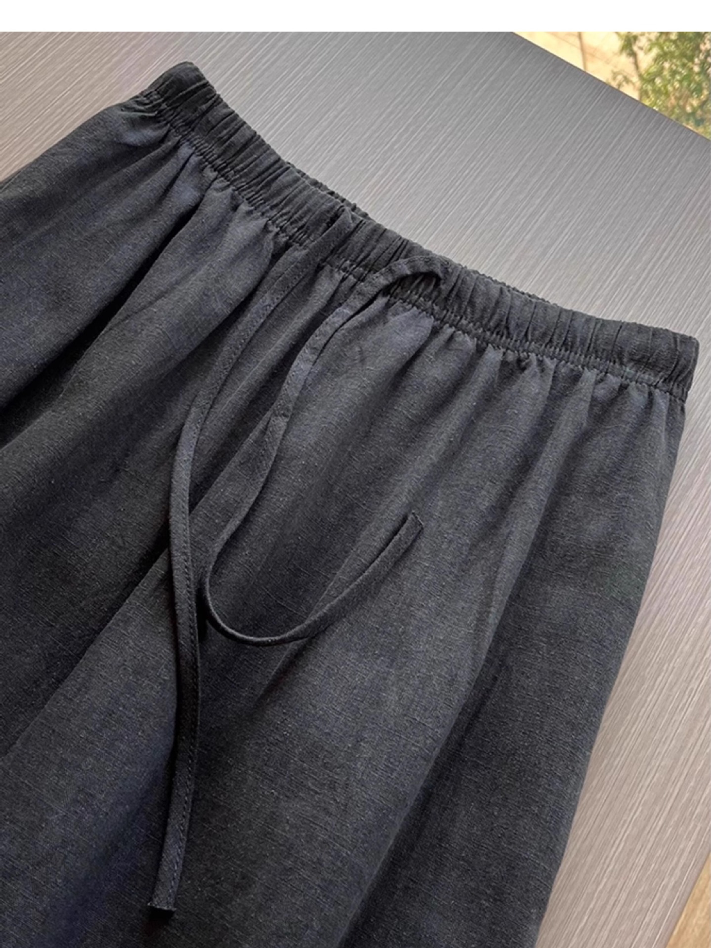 极简穿搭黑色天丝亚麻休闲裤女松紧腰直筒拖地裤子女设计感长裤女