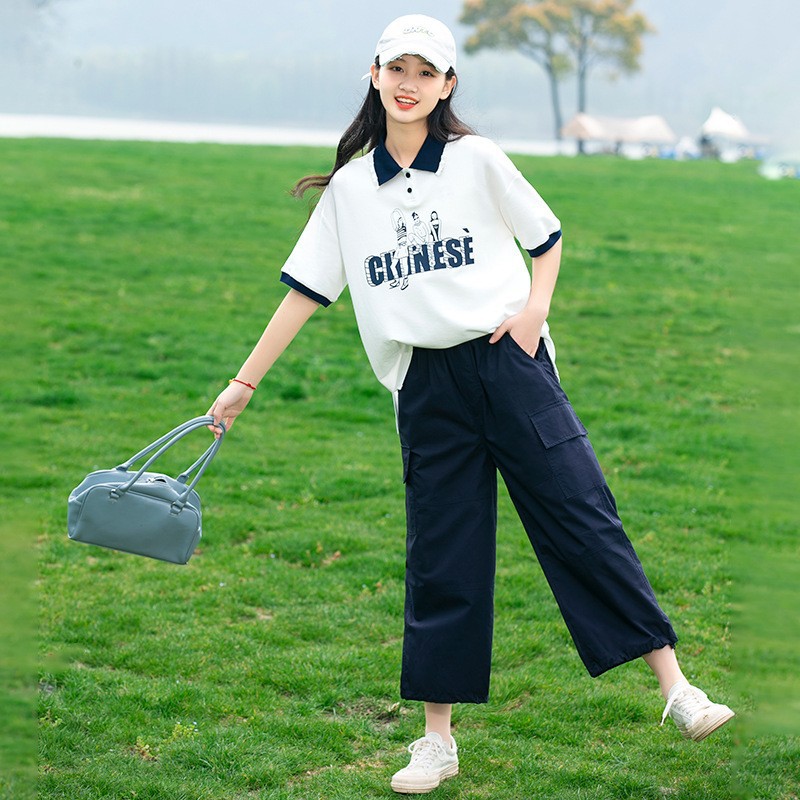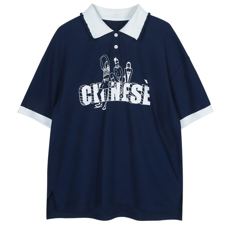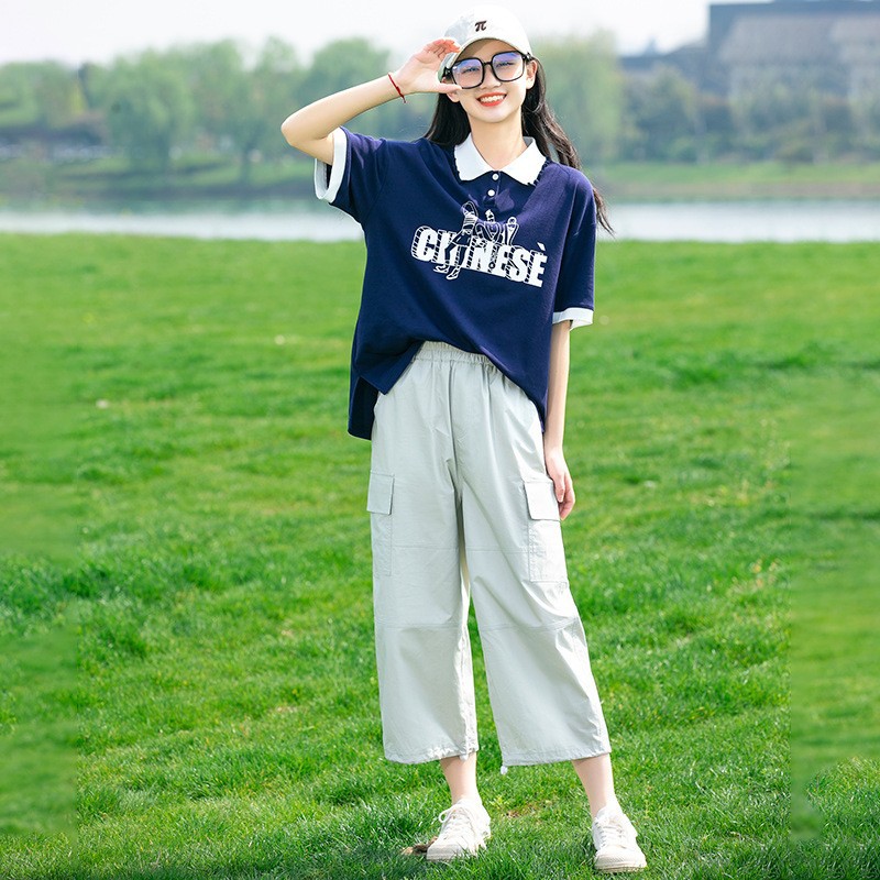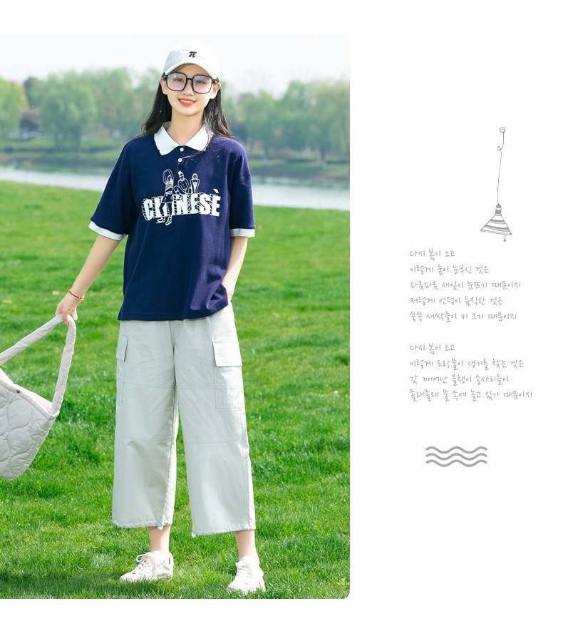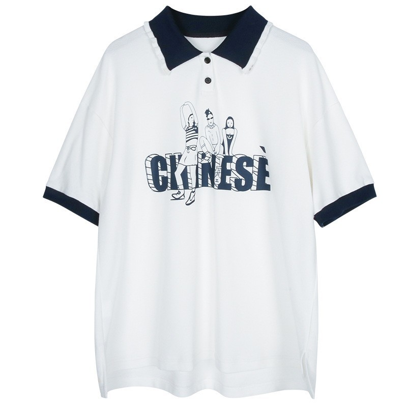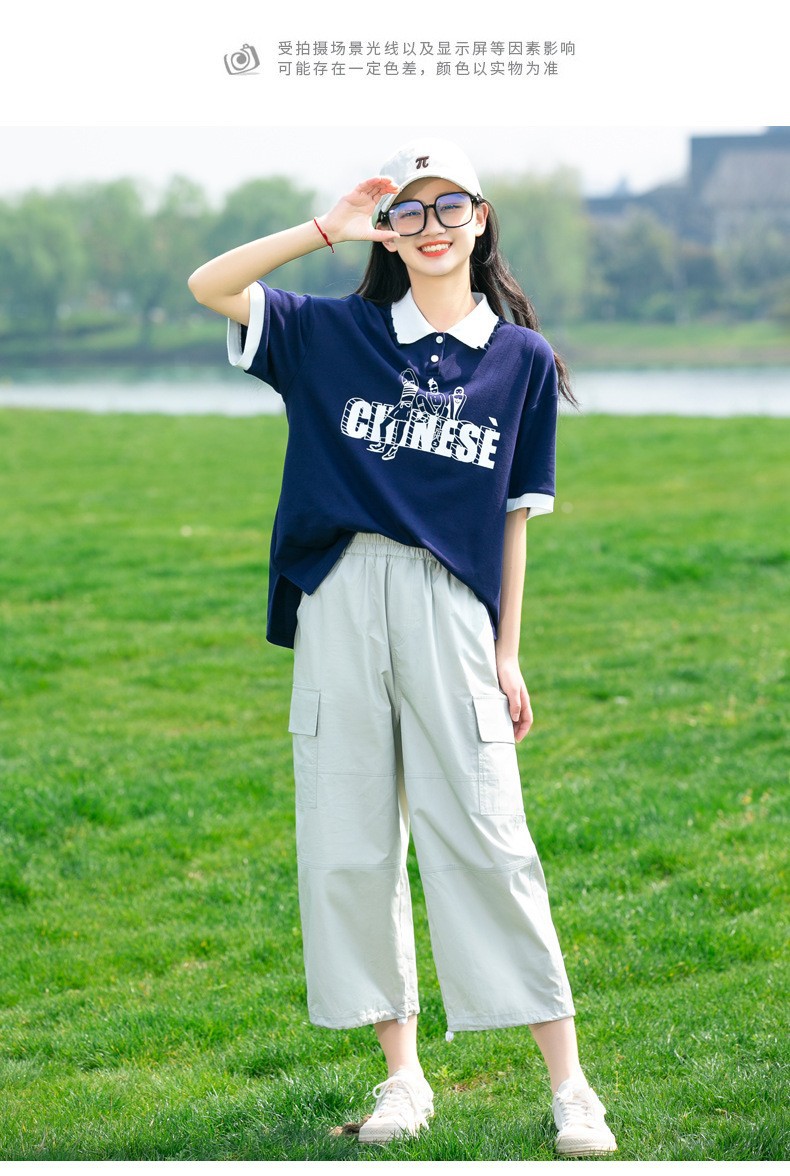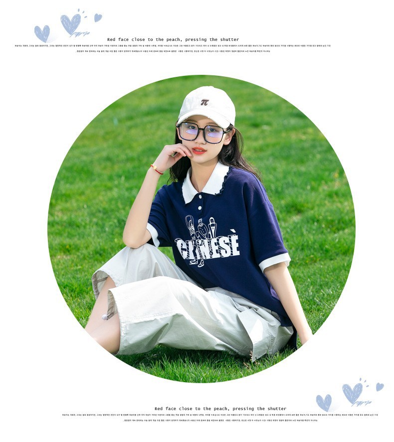 새로운 23208 중학생 반팔 소녀 티셔츠 여름 폴로 칼라 고등학교 소녀 여름 탑 소녀와 어린이를위한스토어 가기