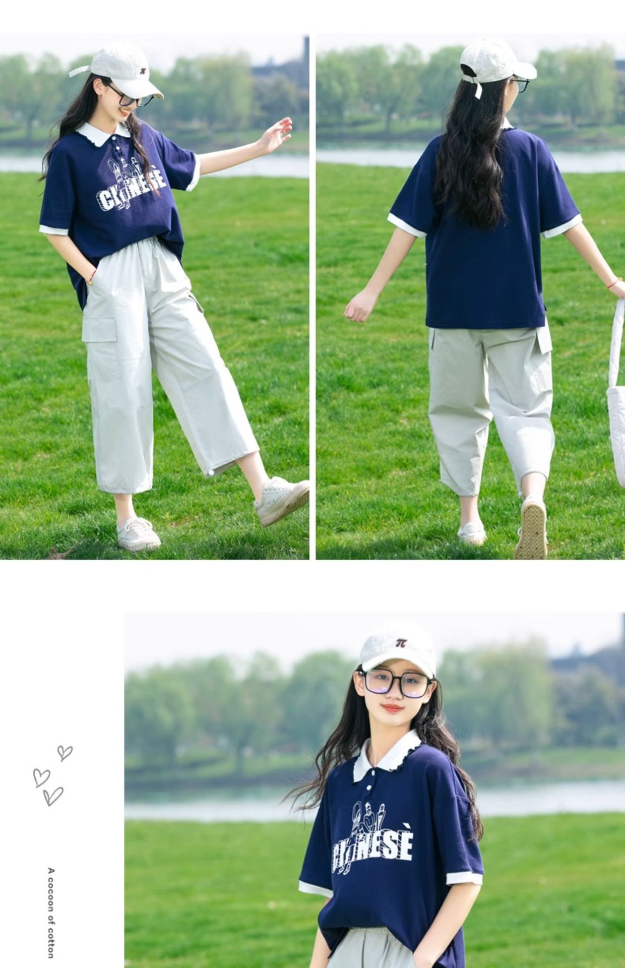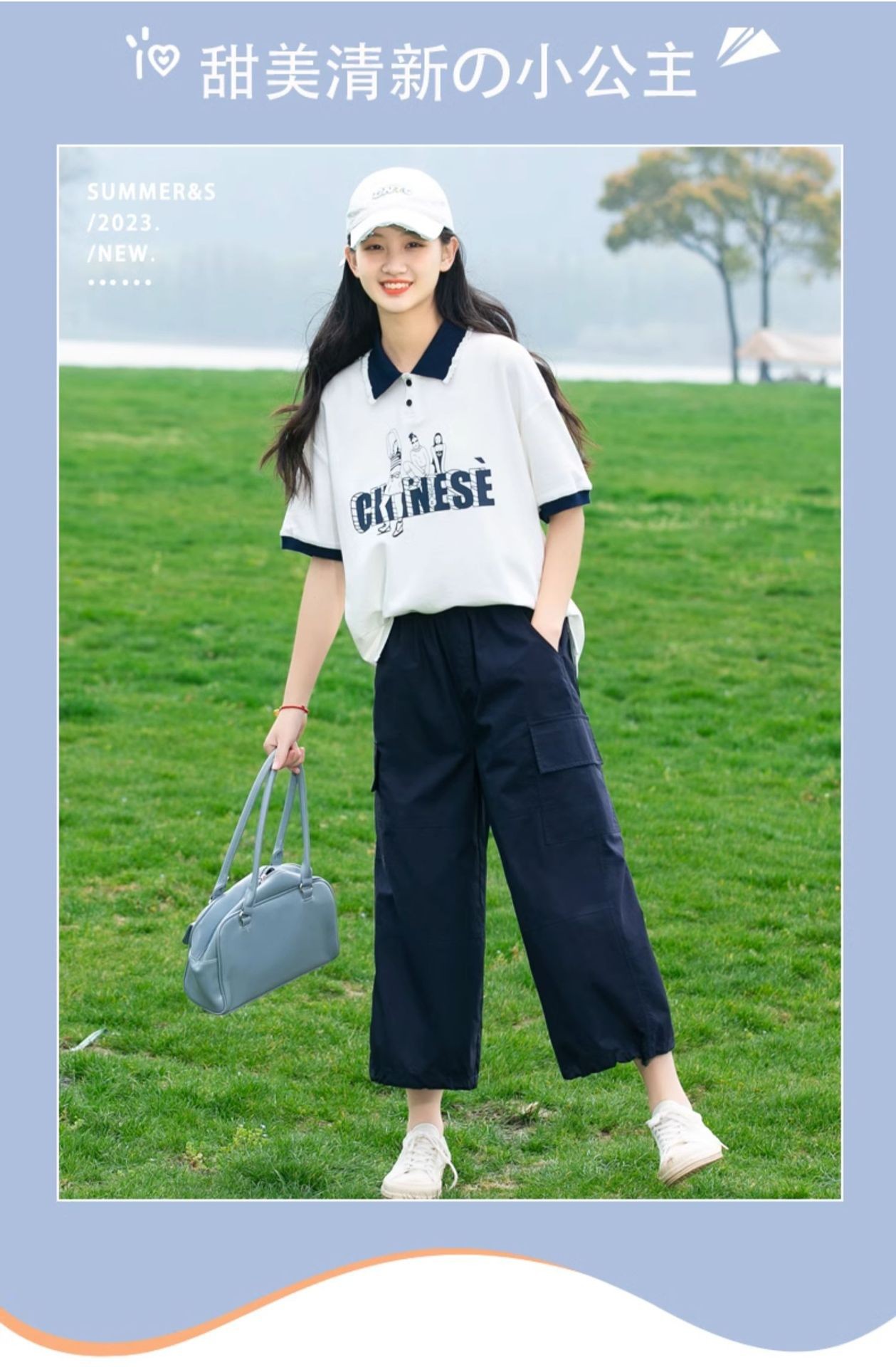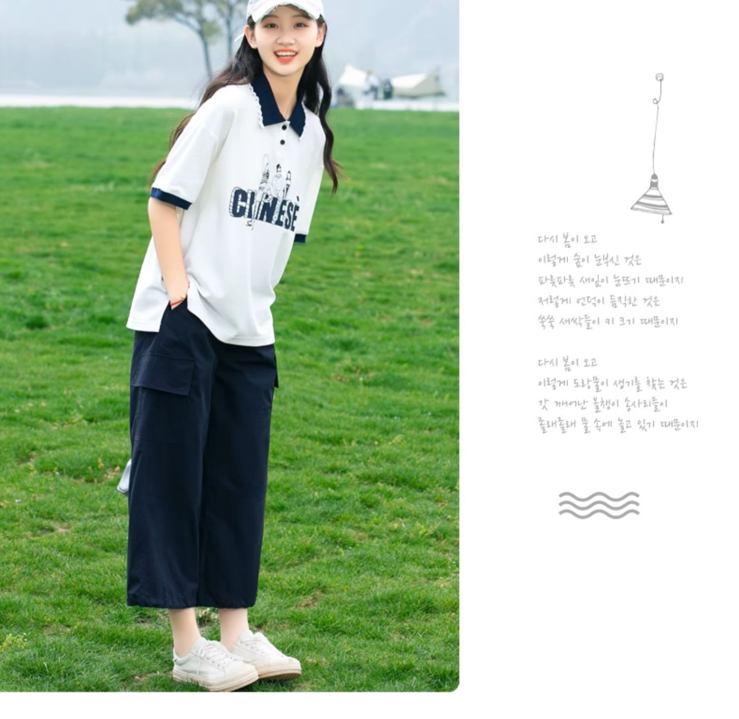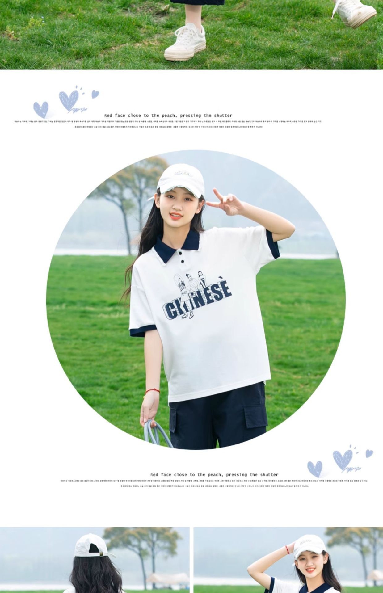 새로운 23208 중학생 반팔 소녀 티셔츠 여름 폴로 칼라 고등학교 소녀 여름 탑 소녀와 어린이를위한스토어 가기
