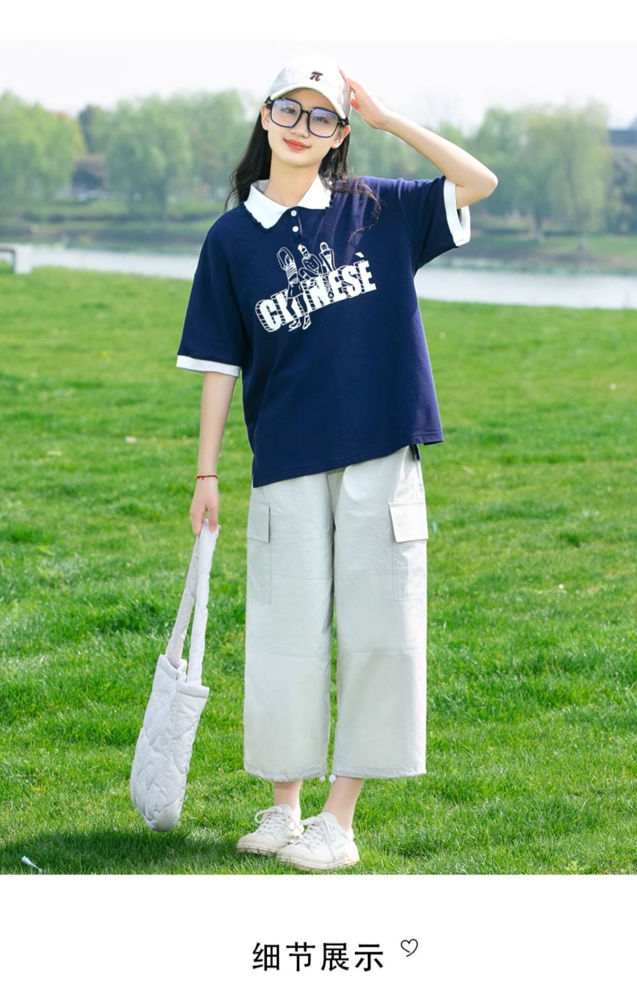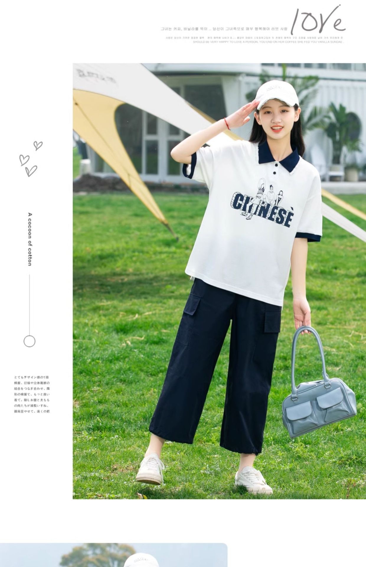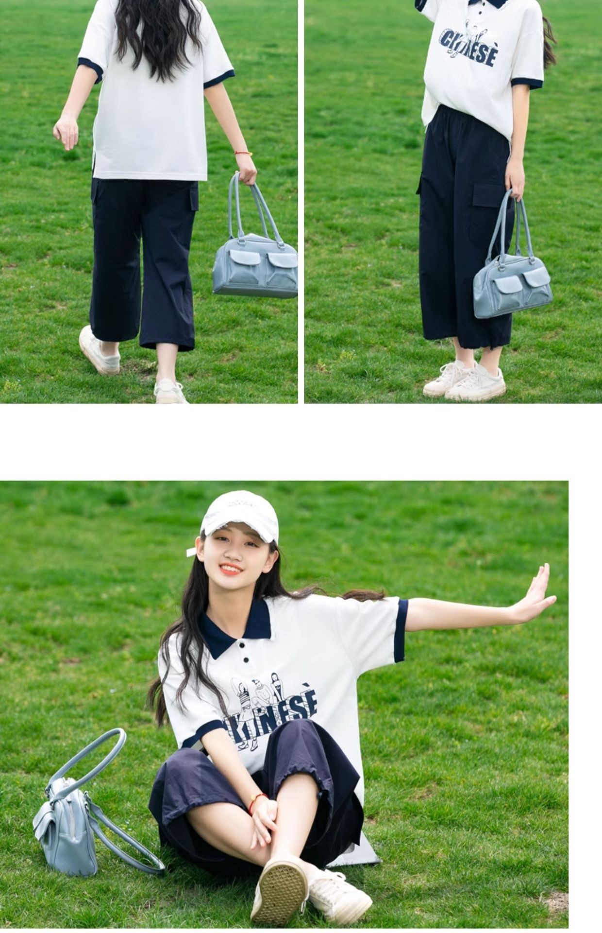 • [네이비블루 티셔츠 + 23237 화이트그레이 팬츠]