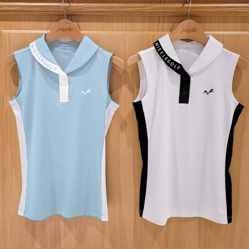 골프 의류 여성 여름 스타일 민소매 옷깃 컬러 블록 저지 땀 흡수 통기성 수축 방지 야외 스포츠 저지스토어 가기