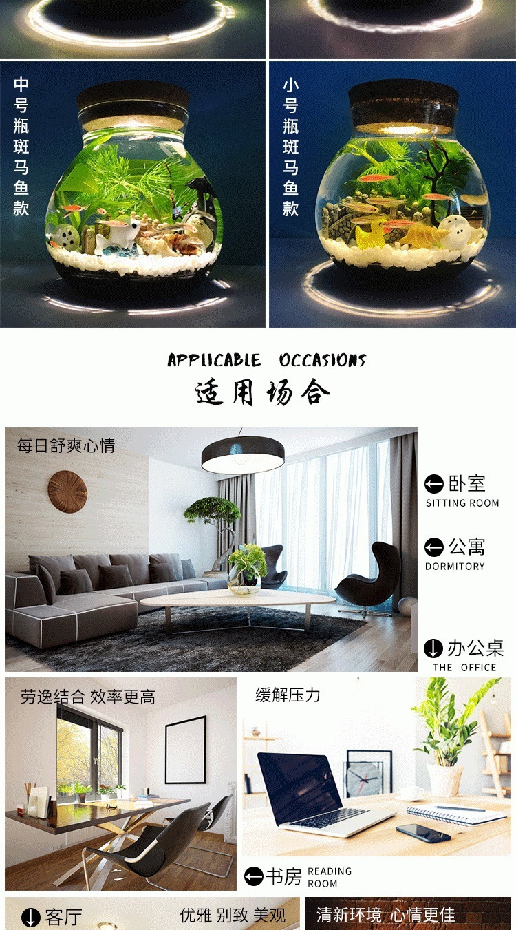 생태병, 마이크로 풍경 수족관, 포이테르 수조, 사무실 책상, 거실, 유리구, 마이크로