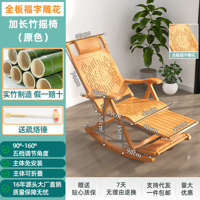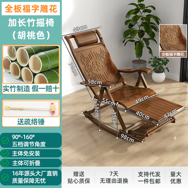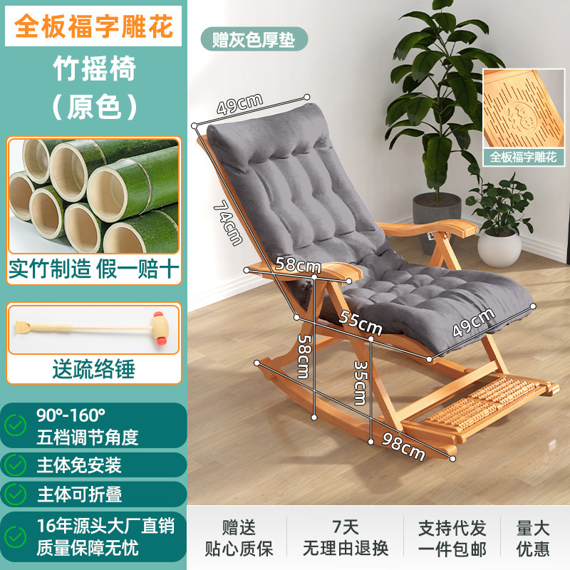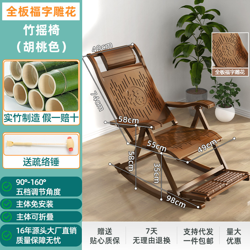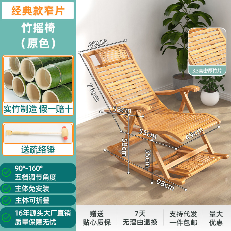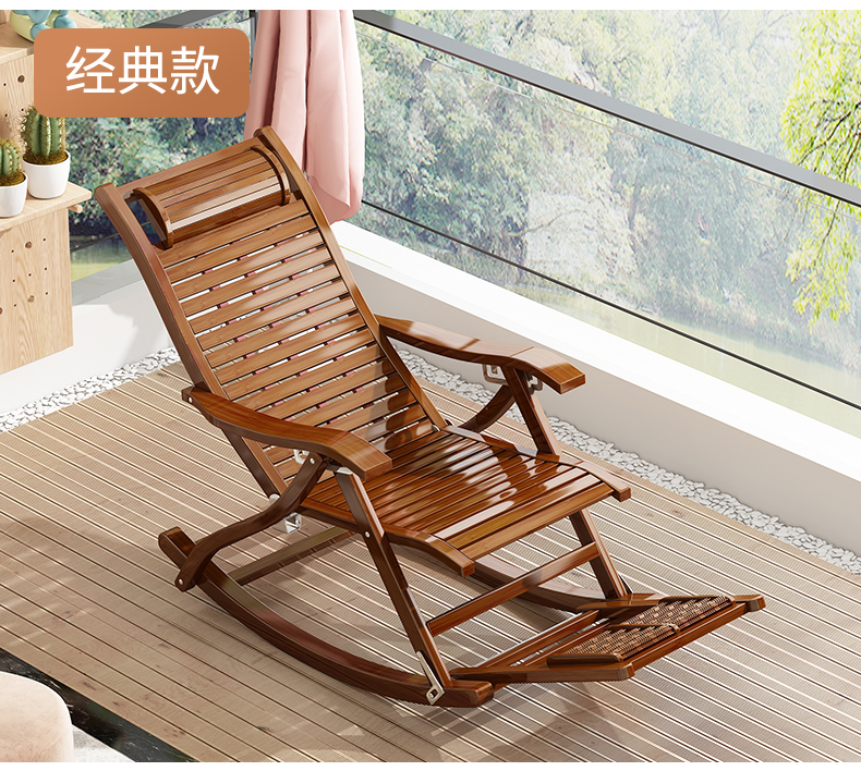 발코니 Recliner 여름 시원한 야외 레저 접이식 대나무 흔들 의자 게으른 흔들 의자 홈 노인을위한 레저 의자스토어 가기