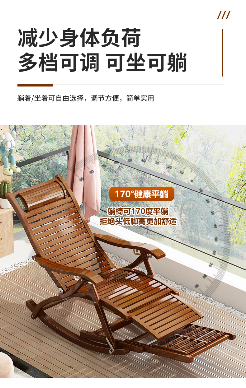 발코니 Recliner 여름 시원한 야외 레저 접이식 대나무 흔들 의자 게으른 흔들 의자 홈 노인을위한 레저 의자