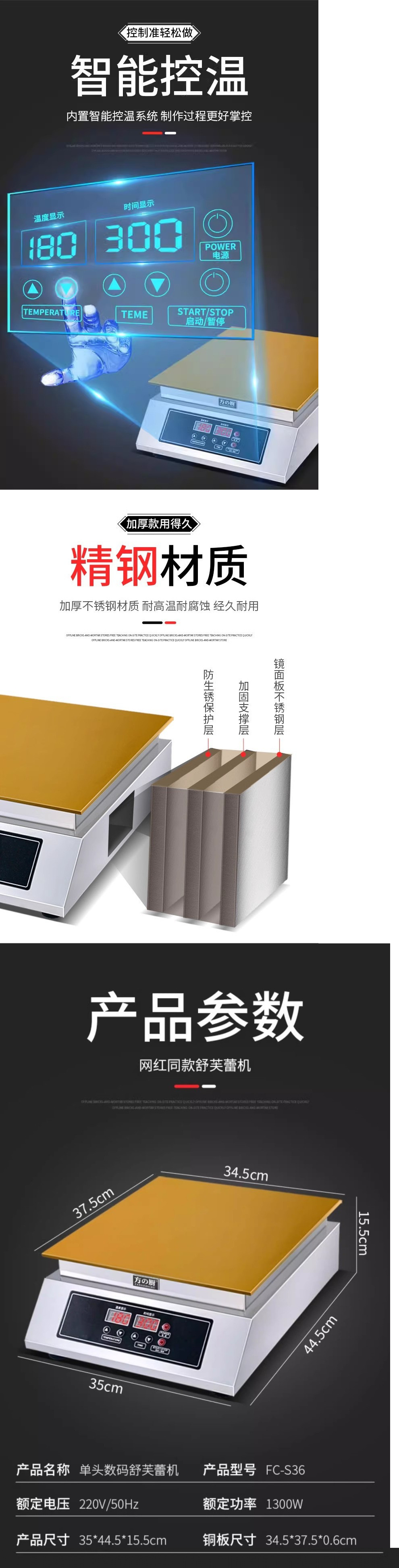Fangchu 디지털 상업용 수플레 기계 노점 스마트 온도 조절 인터넷 연예인 스낵 비 가스 더블 헤드 수플레스토어 가기