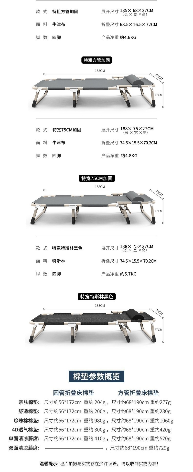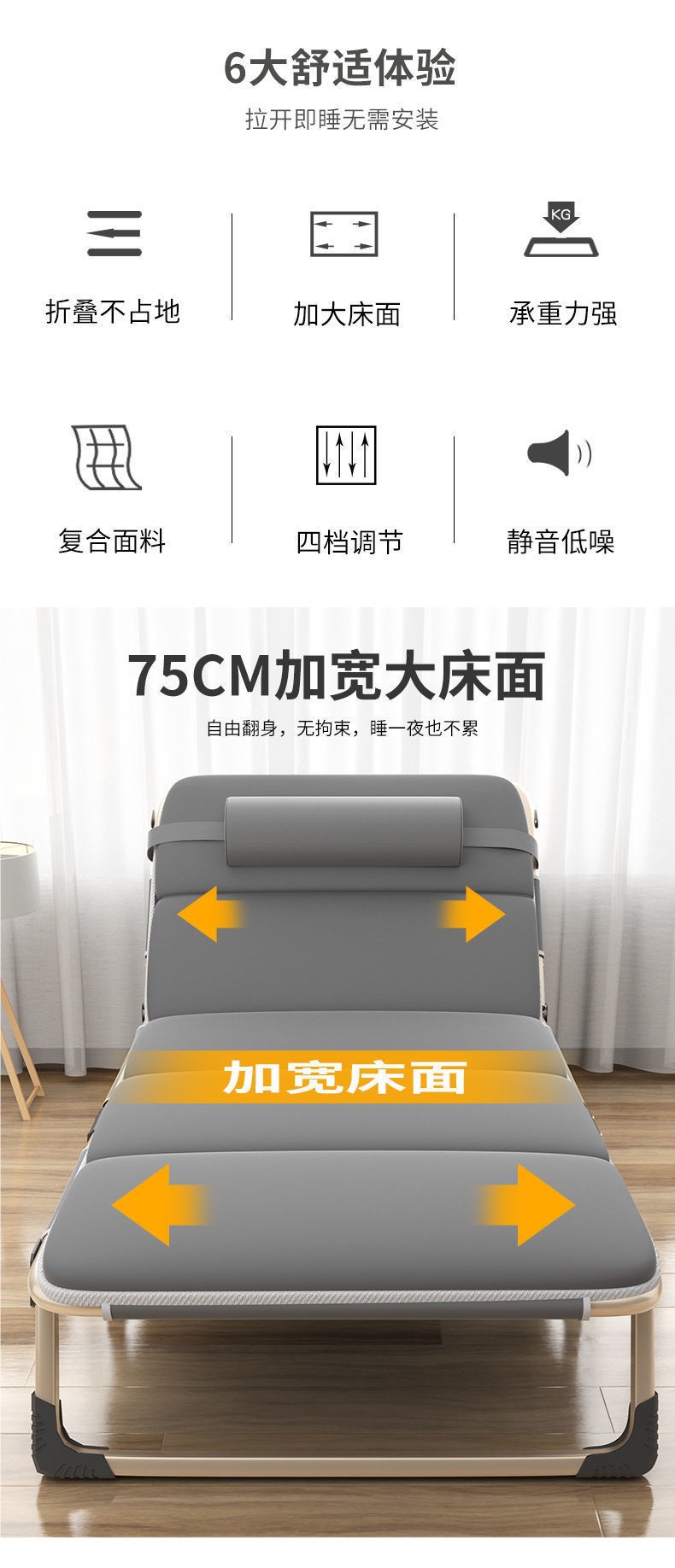 접이식 침대 싱글 사무실 점심 시간 침대 휴대용 안락 의자 병원 간단한 낮잠 침대 캠프 스탠드 4 코너