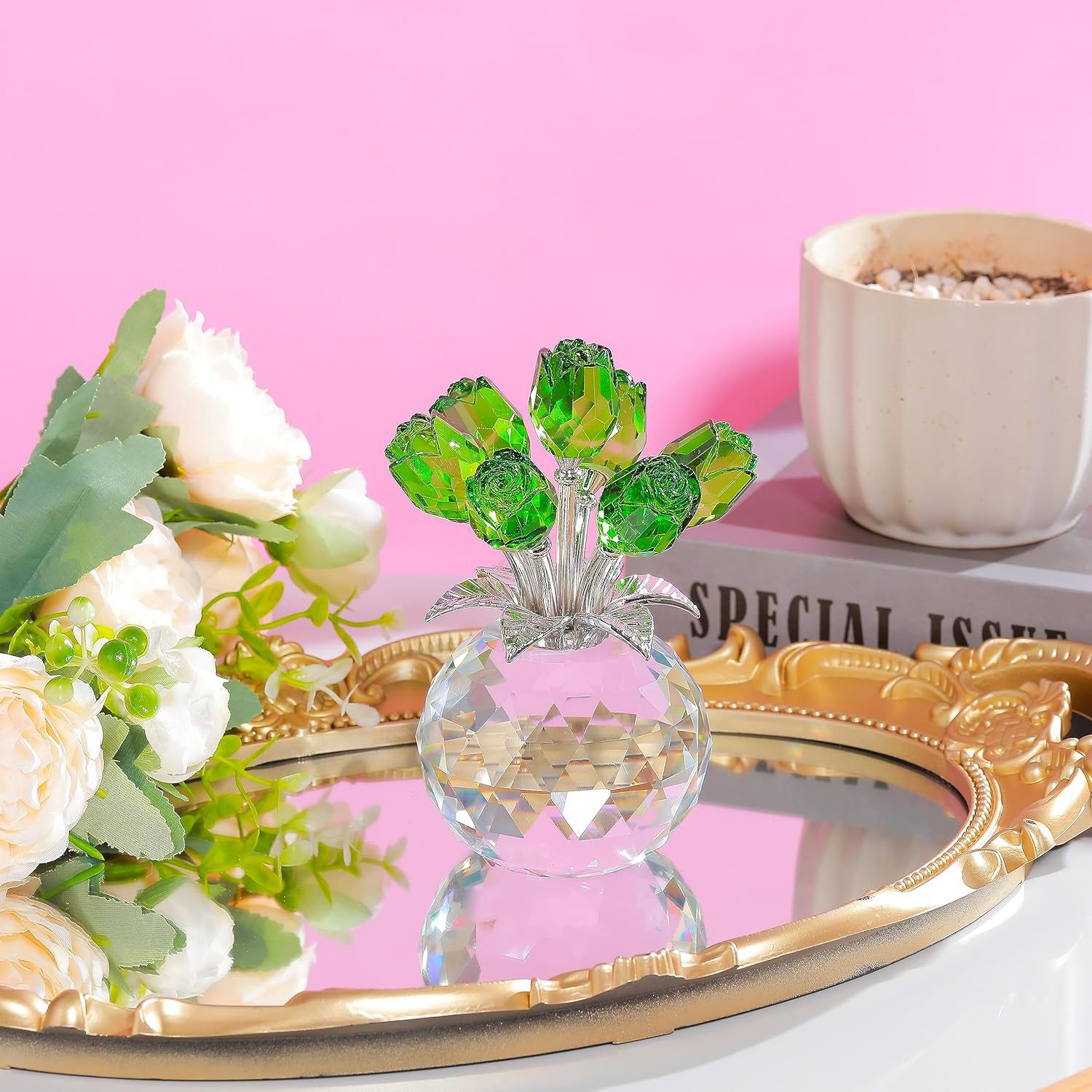 크리스탈 장미 꽃 장식품, 수공예품, 가정 장식, 아내와 여자 친구를 위한 로맨틱 장미 선물, 드롭 배송스토어 가기