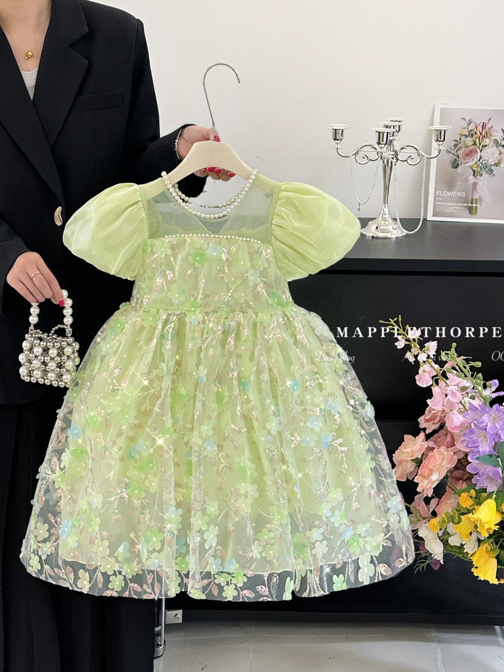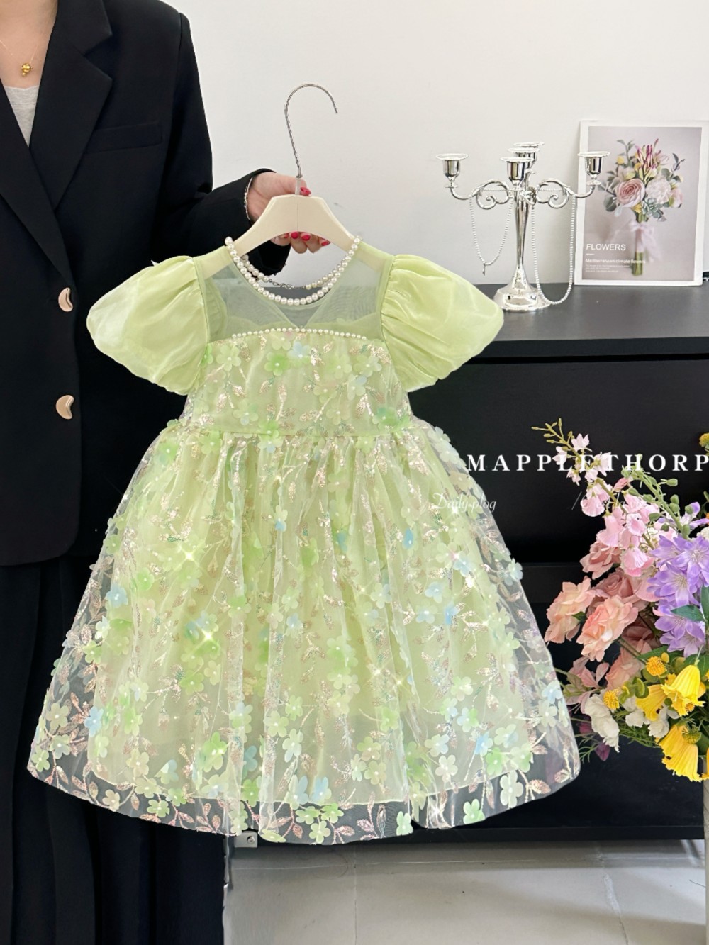 여자 보우 드레스 2025 새로운 어린이 스타일 꽃 퍼프 슬리브 아기 슈퍼 요정 달콤한 공주 드레스스토어 가기