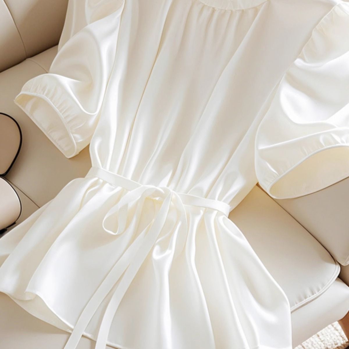 화이트 버블 반팔 쉬폰 셔츠 여성 하이 엔드 디자인 센스 틈새 독특한 아름다운 여름 작은 셔츠 꽉 허리 탑스토어 가기